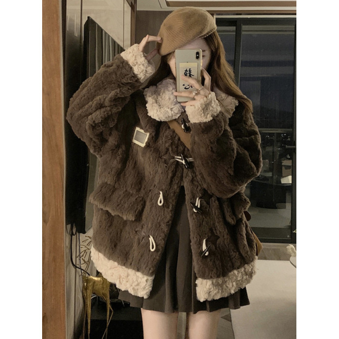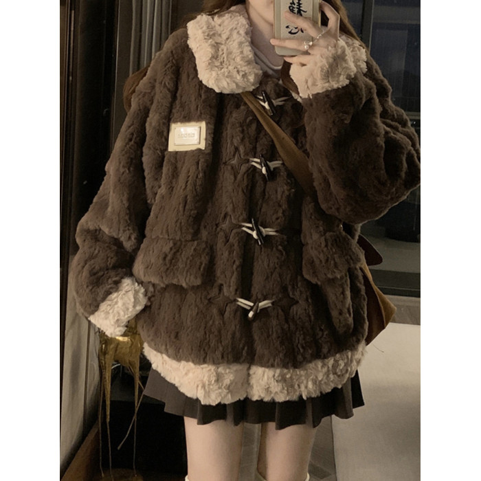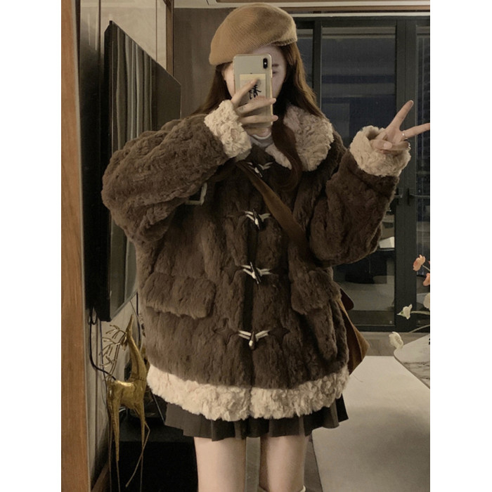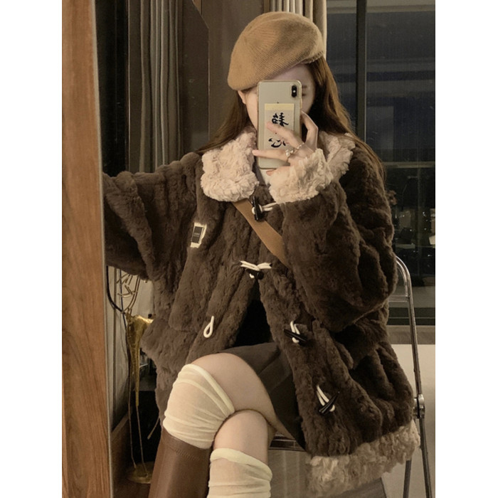 牛角釦羊羔毛外套女短款2025冬季新年輕款加厚毛絨絨棉服皮草大衣
