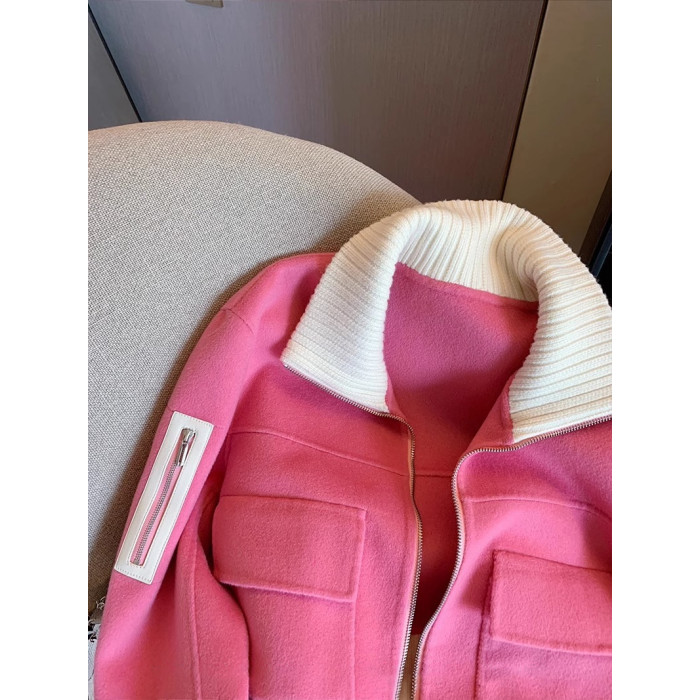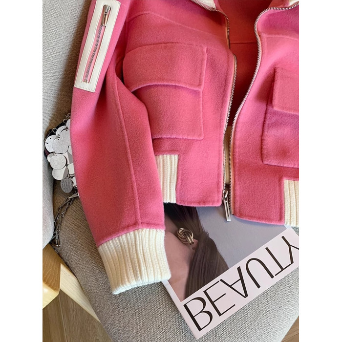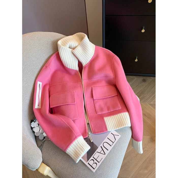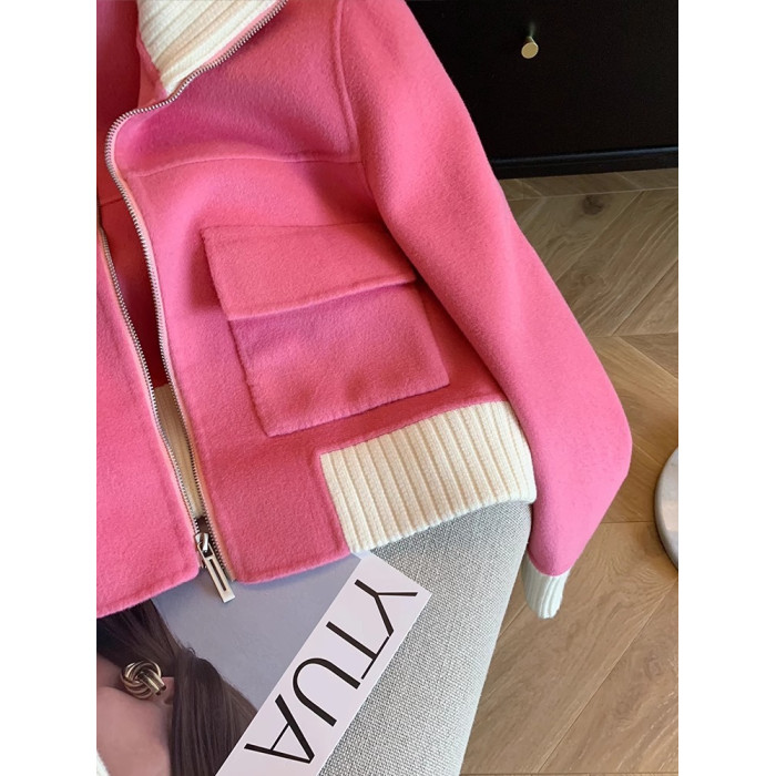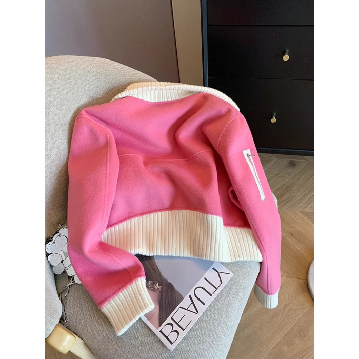 拼接撞色設計感小衆短款翻領夾克外套女秋季甜美別致休閒開衫上衣