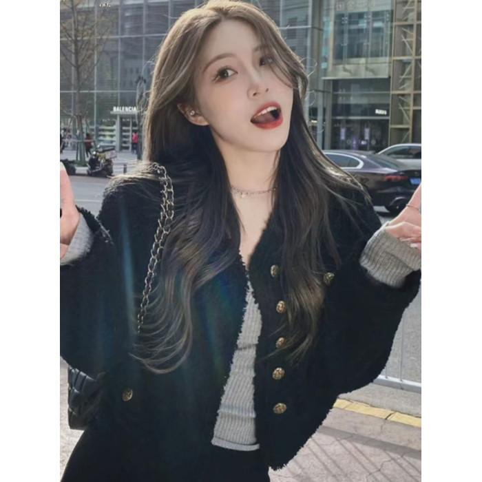 黑色小香風外套女秋冬2025新款小個子加厚夾棉名媛高級感短款上衣