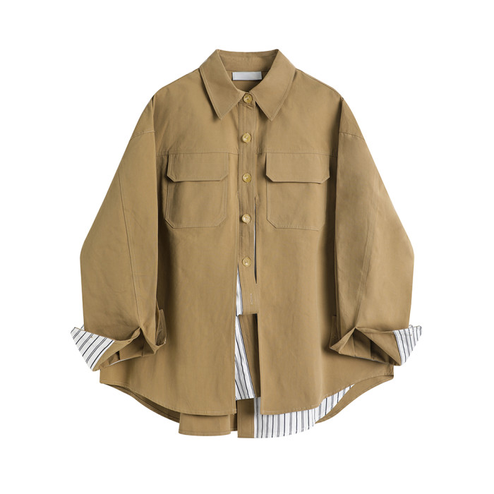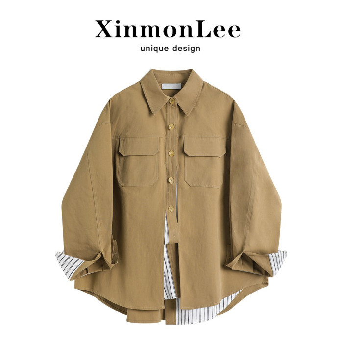 XinmonLee港風復古工裝襯衫外套女春秋假兩件設計感寬松顯瘦上衣