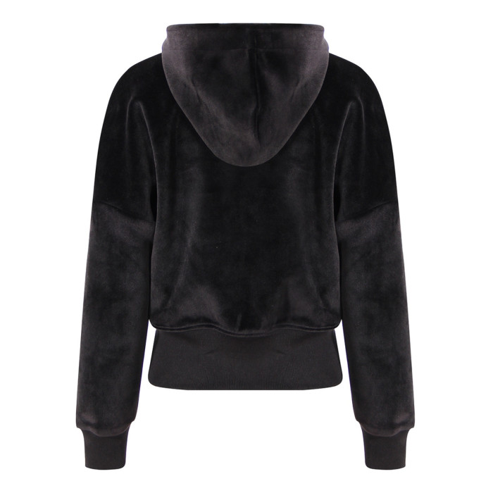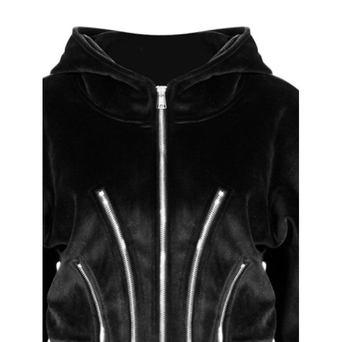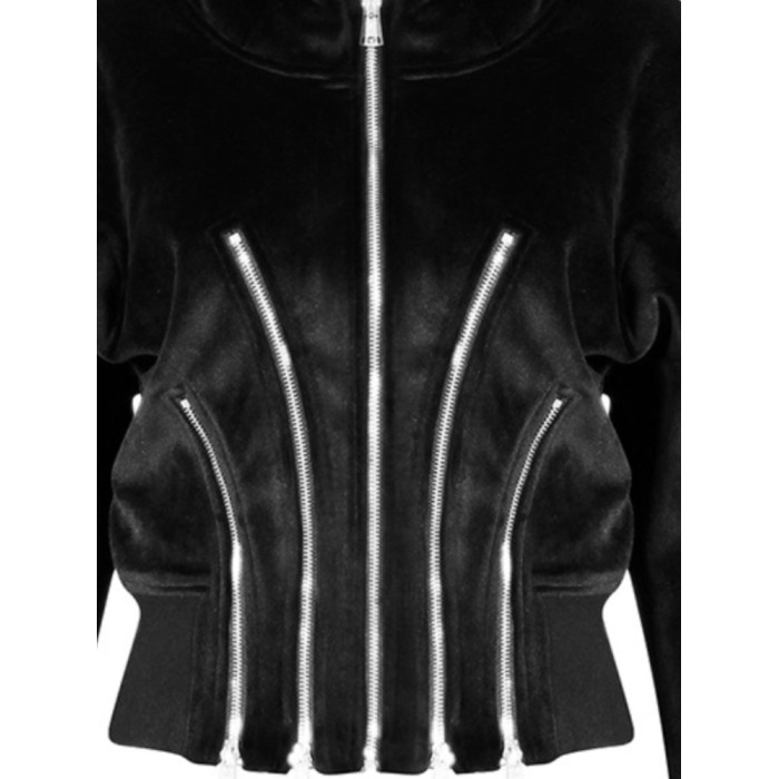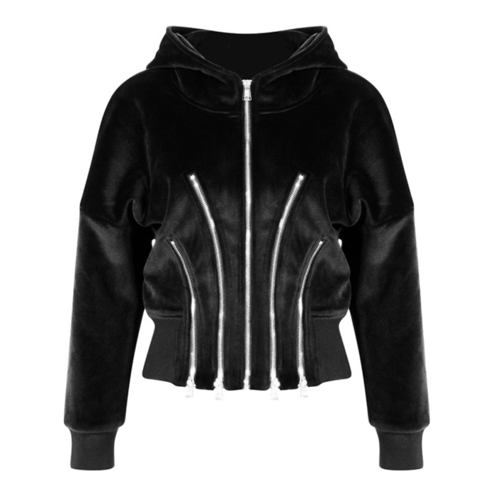 設計感小衆寬松收腰加絨加厚拉鍊金絲絨短款連帽衛衣開衫外套女秋