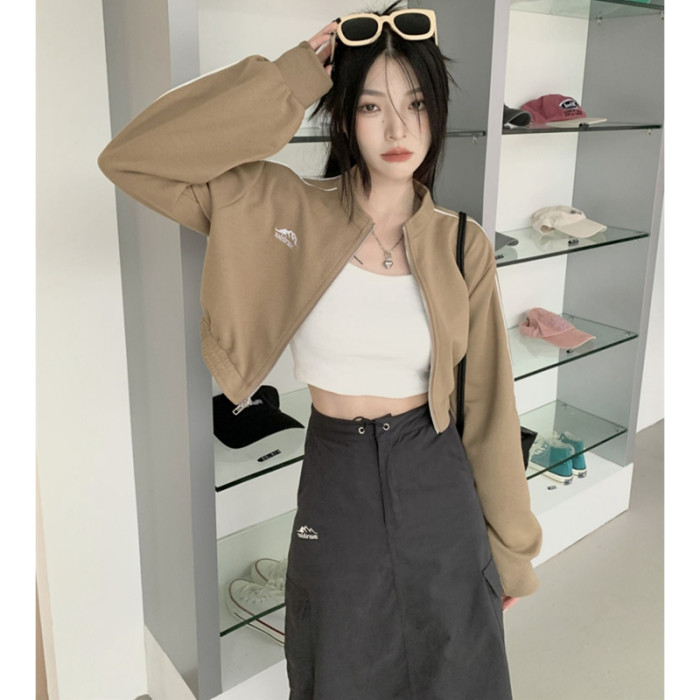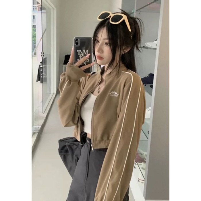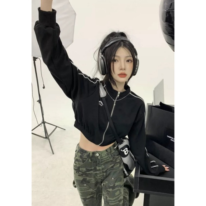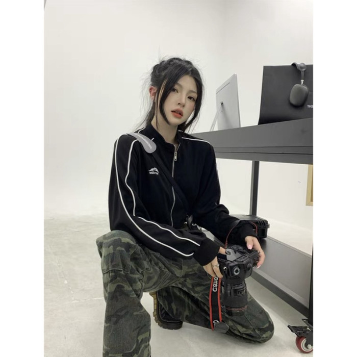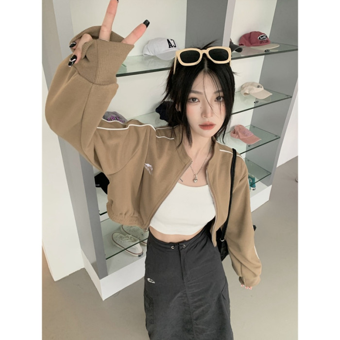 甜酷風正肩長袖運動短款衛衣外套女秋季款小個子辣妹夾克開衫上衣