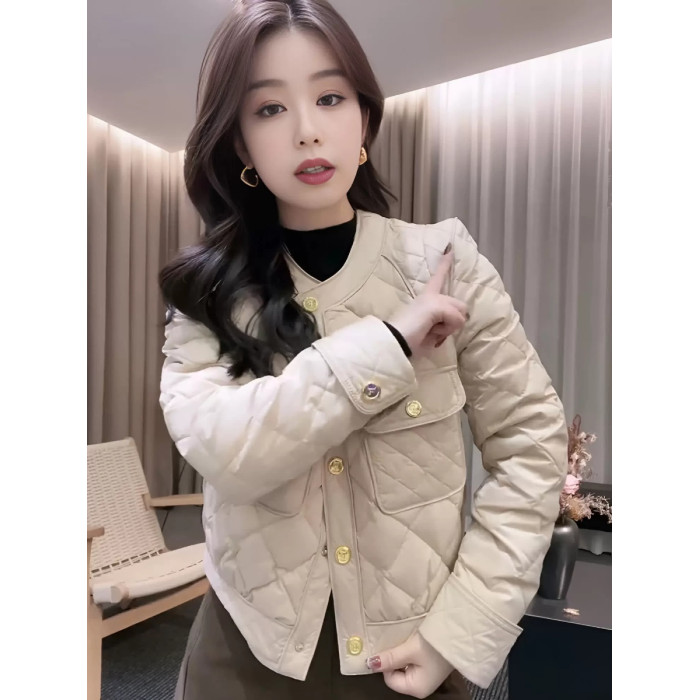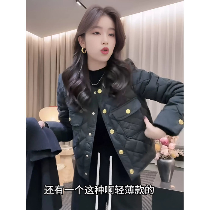 小香風菱格棉服女春秋2025新款寬松時尚洋氣高級感短款夾棉外套女