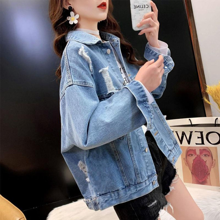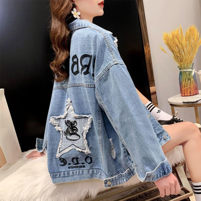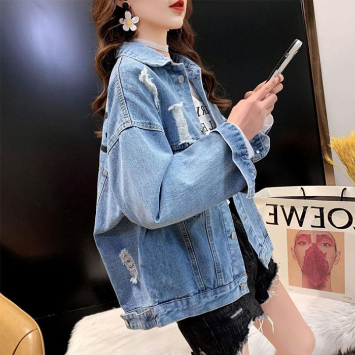 休閒短款牛仔外套女秋春秋裝2025年新款刺綉破洞寬松大碼牛仔衣服