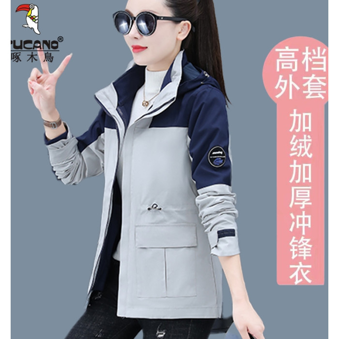 啄木鳥沖鋒衣女款可拆卸三合一2024新款加絨加厚保暖寬松休閒外套
