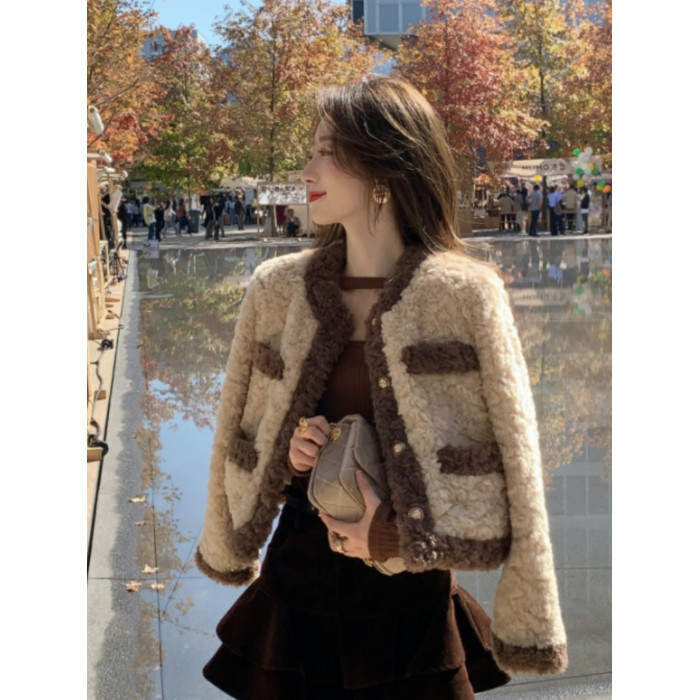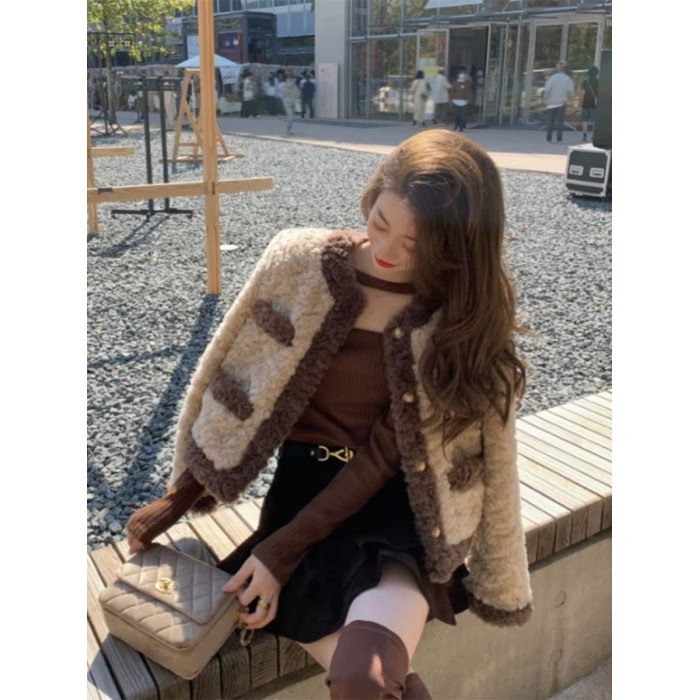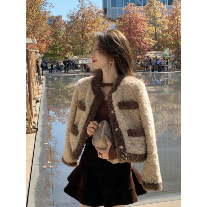 小香風仿羊羔毛保暖短款外套女秋冬2025新款韓版寬松氣質上衣加厚