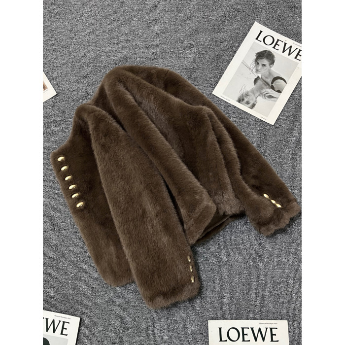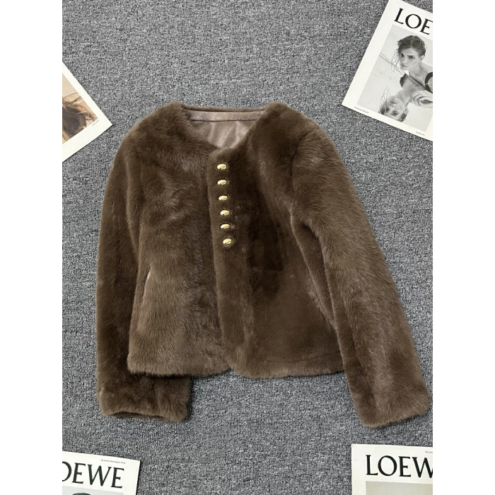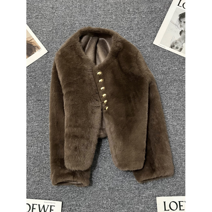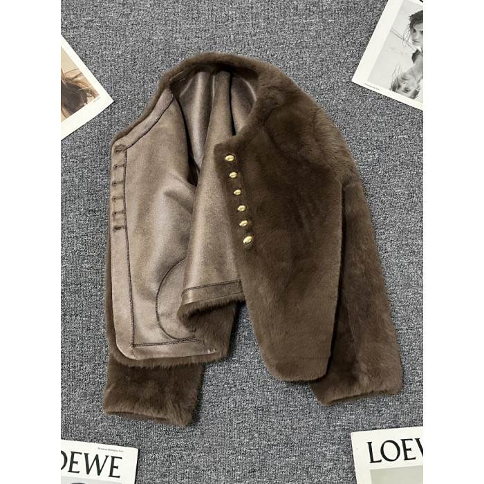 咖色貂絨短外套女2025秋冬新款小個子設計感氣質休閒高級好看上衣