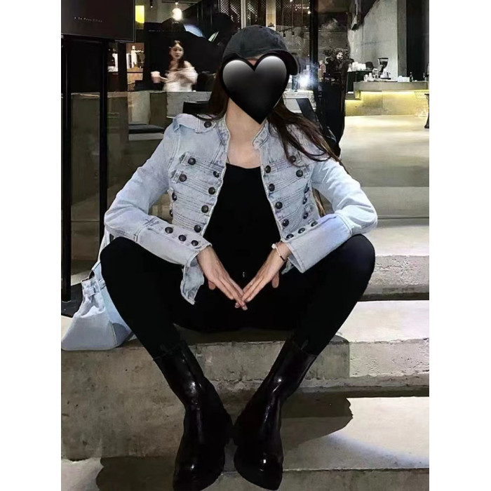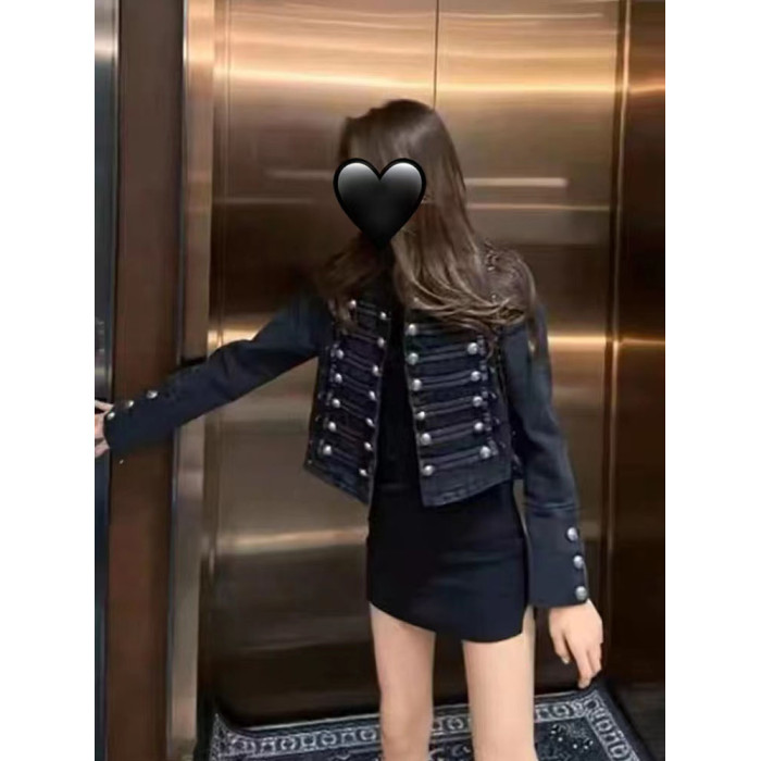 溫婉同款宮廷風黑灰色牛仔外套女2025春秋短款百搭夾克重工上衣潮