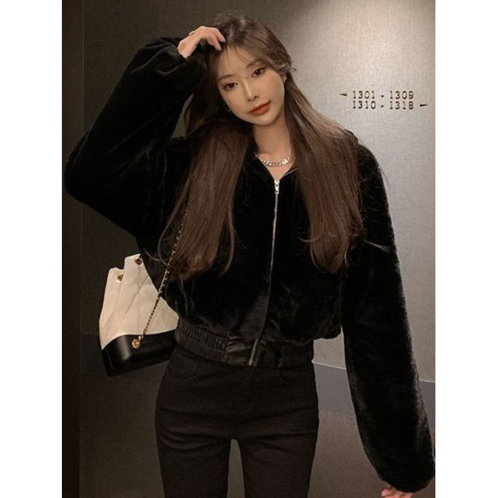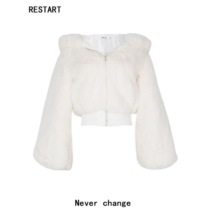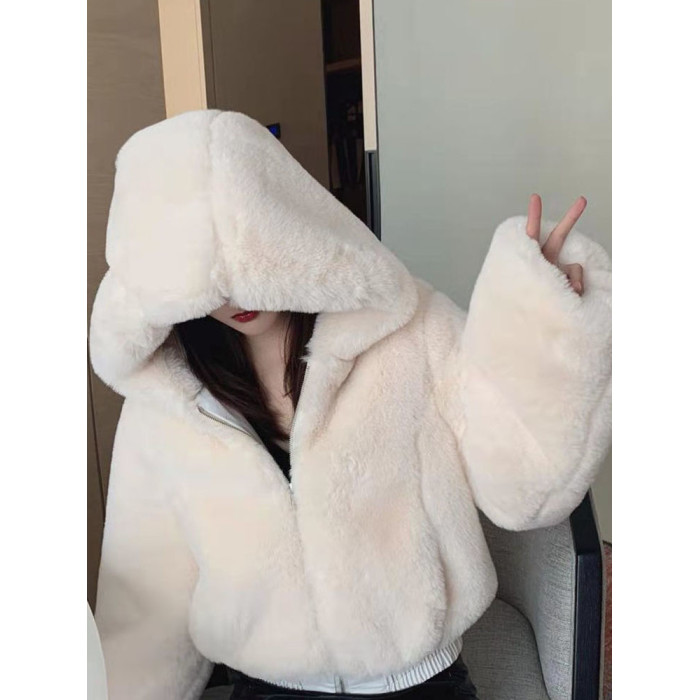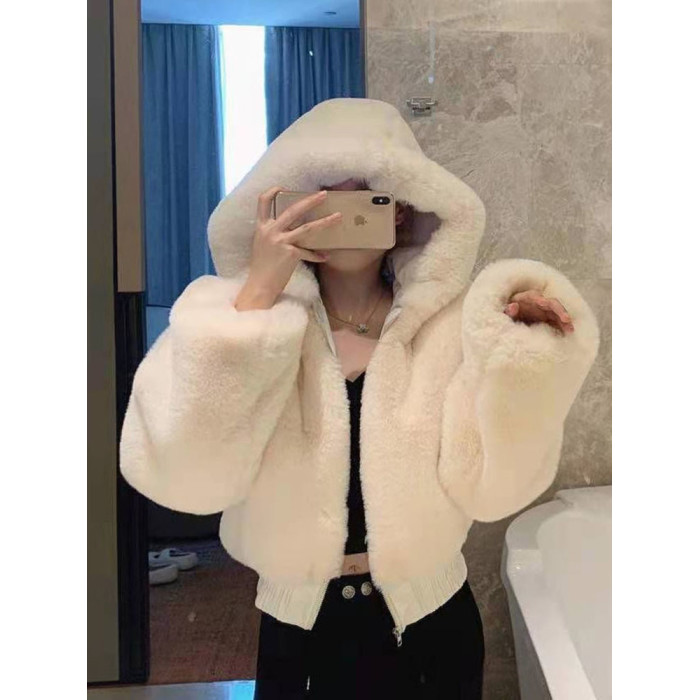 短款仿兔毛絨皮草外套女2025年冬季加厚棉服小個子毛茸茸連帽衛衣