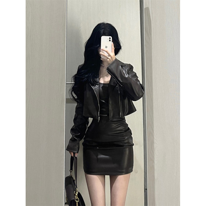 辣妹短款黑色皮衣外套女2025春秋新款高級感小個子PU皮夾克上衣潮