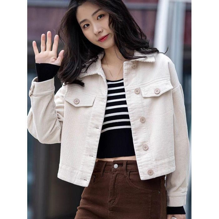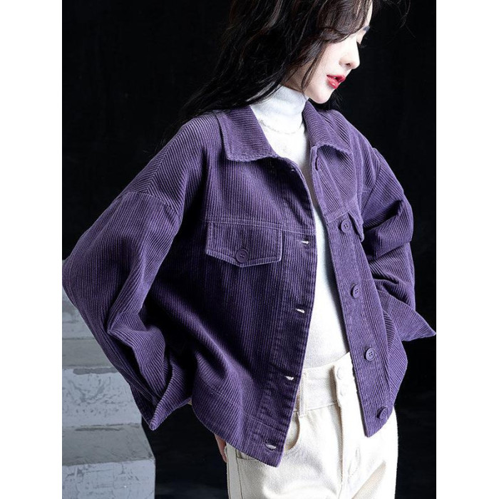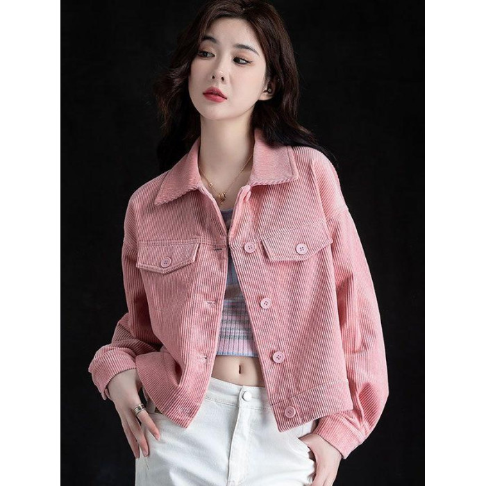 燈芯絨短外套休閒襯衫女裝秋冬款條絨上衣長袖小個子氣質開衫百搭