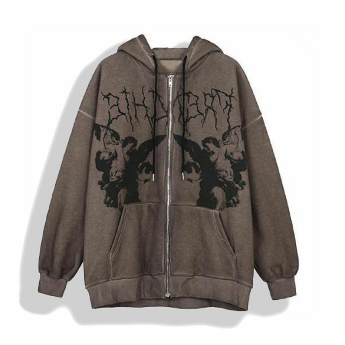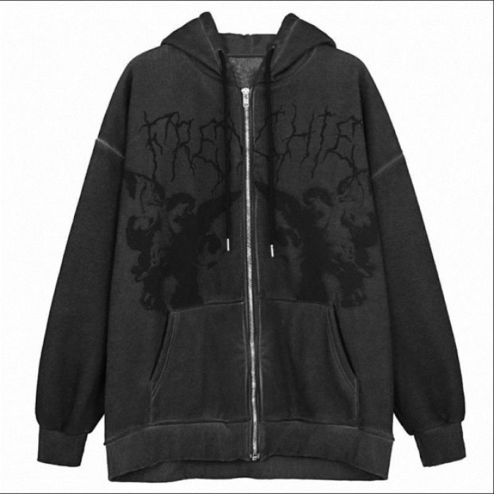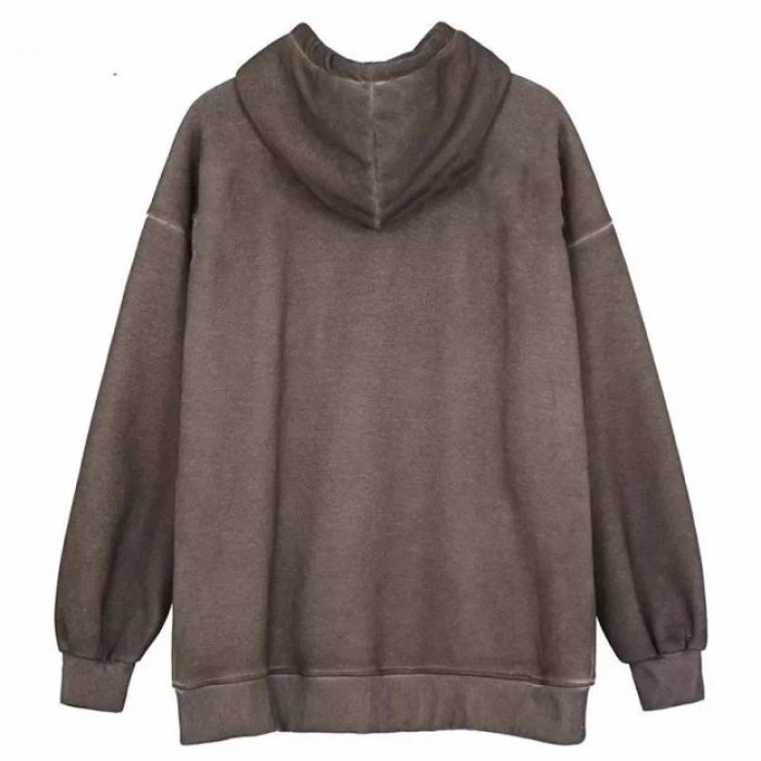 外套女秋冬2025年新款加絨加厚寬松開衫復古連帽日系上衣服潮ins