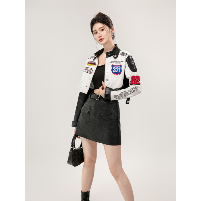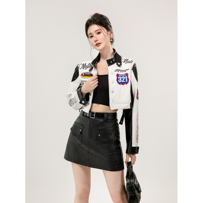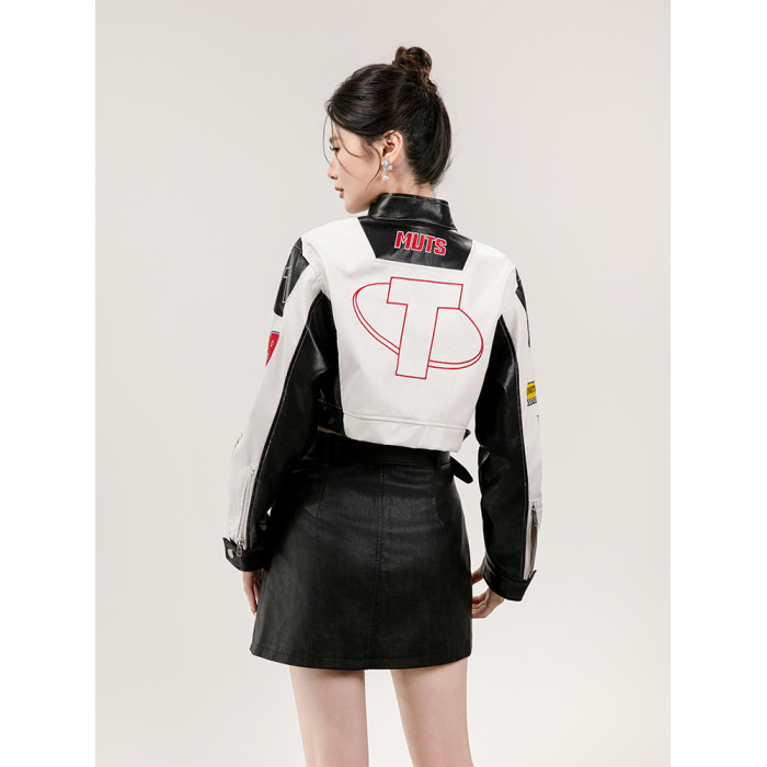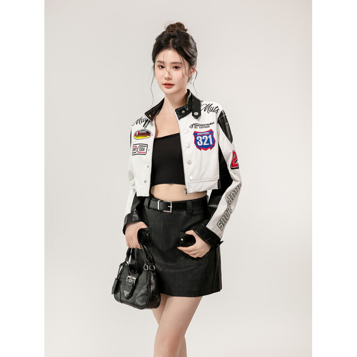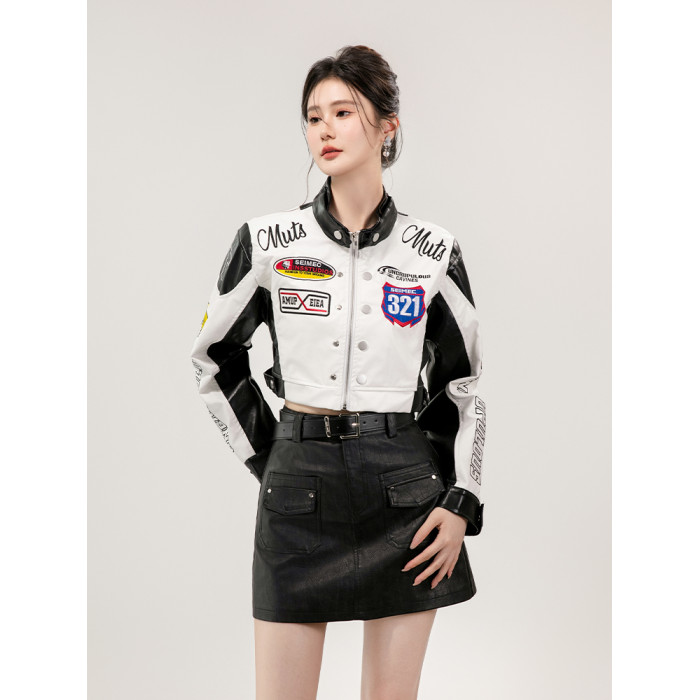 機車服外套女美式短款賽車服秋裝新款皮衣夾克街頭風賽車棒球服潮