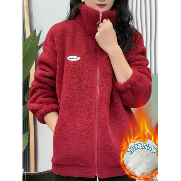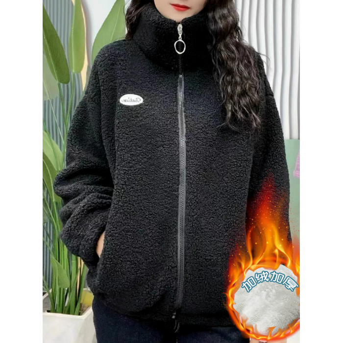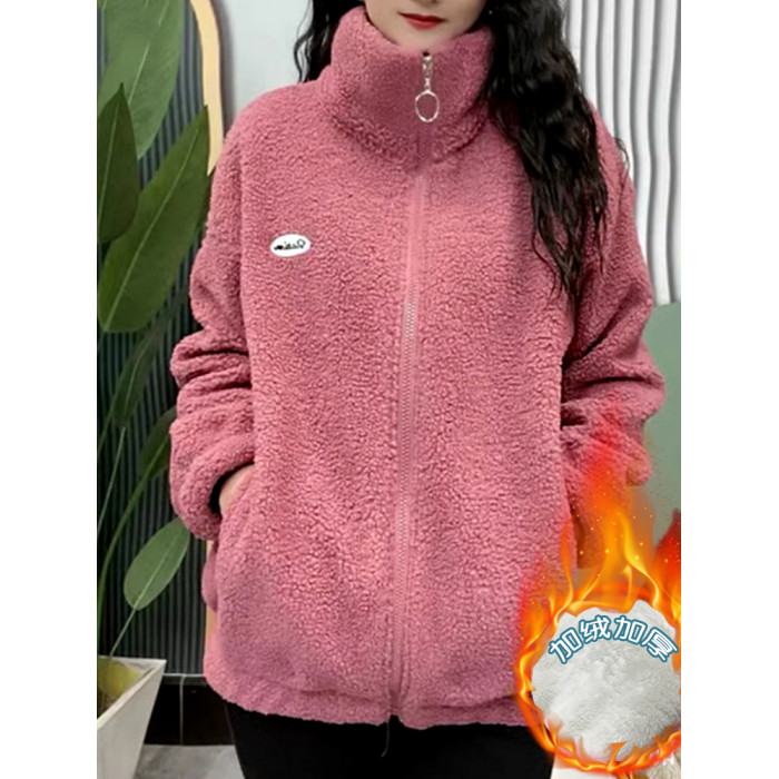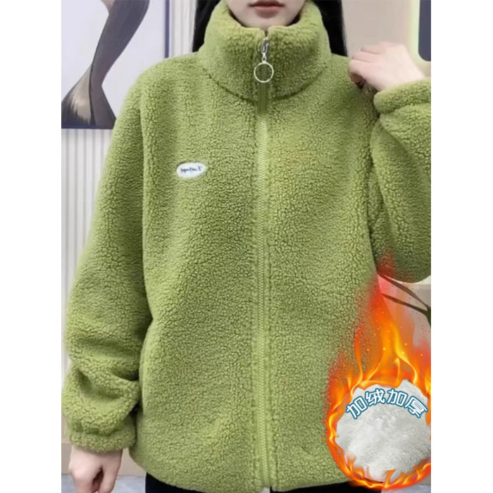 短外套女加厚一體絨秋冬季新款減齡洋氣加絨顆粒絨保暖羊羔毛上衣