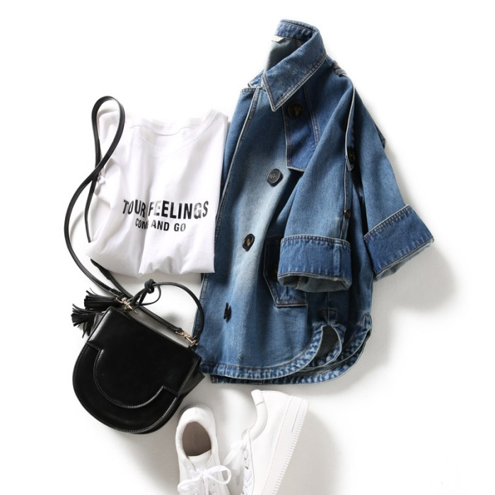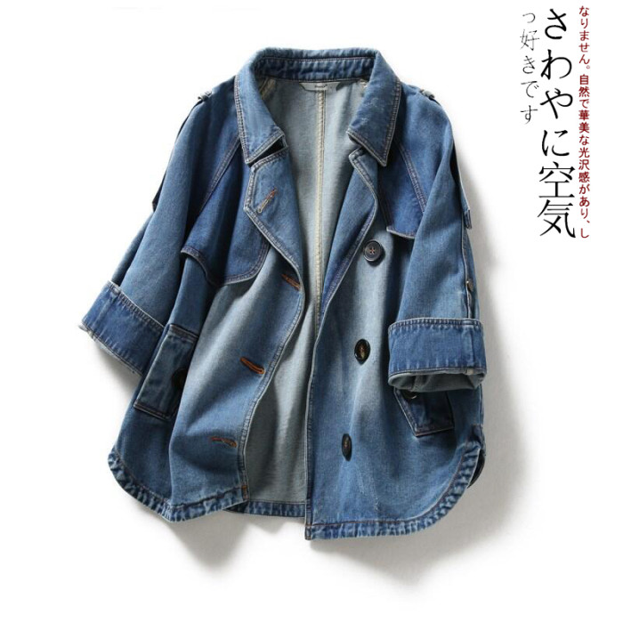 品牌專櫃撤櫃女裝原單日系輕奢牛仔外套休閒氣質插肩夾克上衣