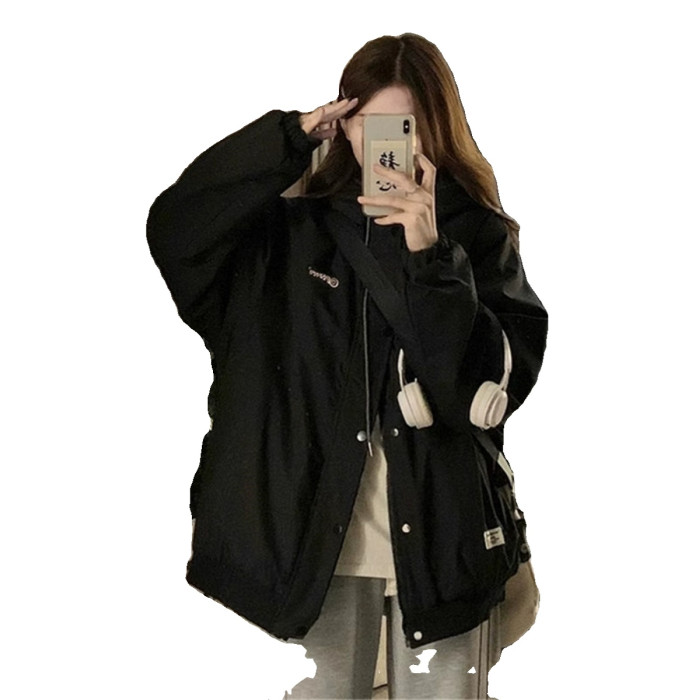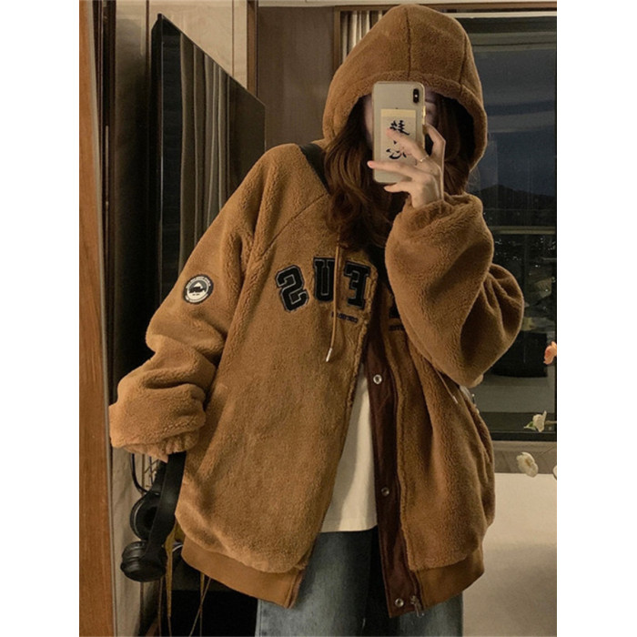 雙面穿棒球服羊羔毛外套女2025冬季新款加絨美式復古連帽夾克外套