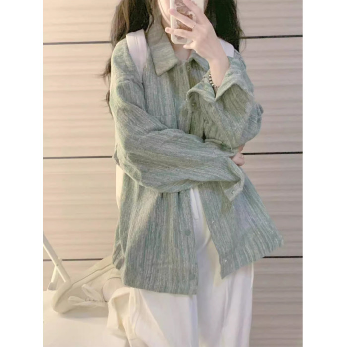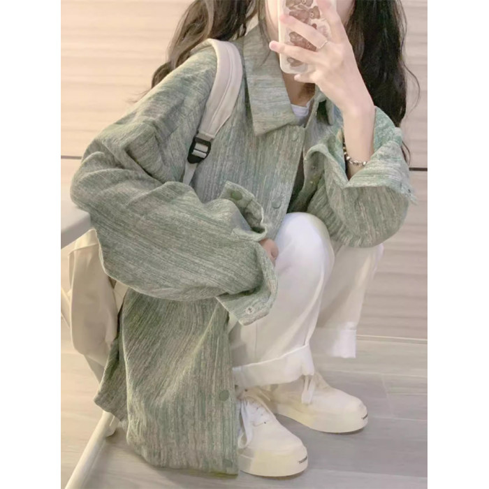 獨特小衆花紗水洗牛仔外套女春秋款學生寬松百搭復古翻領夾克上衣