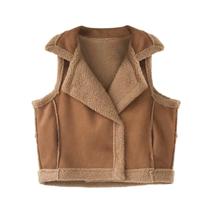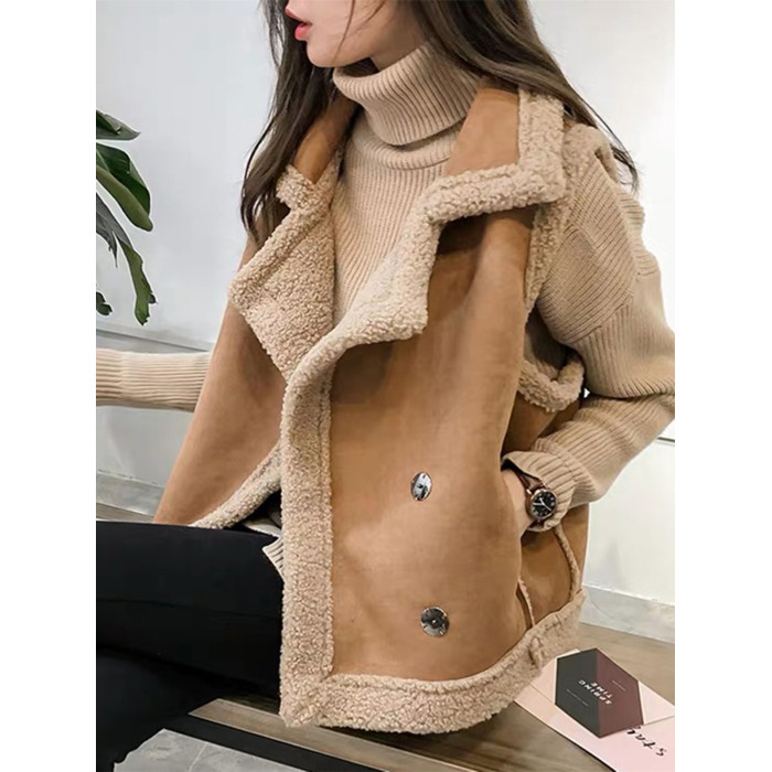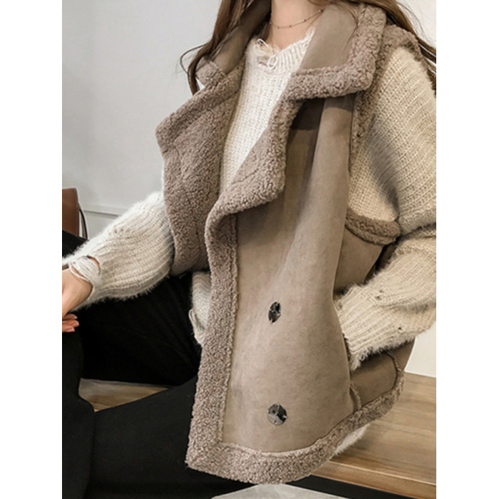 羊羔毛馬夾外套女春秋皮毛一體寬松毛絨韓版胖mm外搭無袖馬甲背心