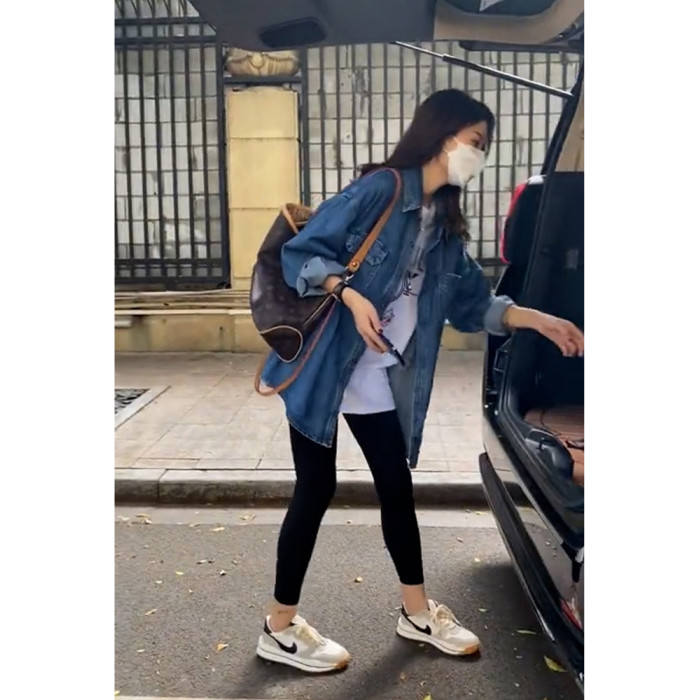 復古港風軟牛仔襯衫女春秋韓版寬松小個子氣質曡穿襯衣百搭薄外套