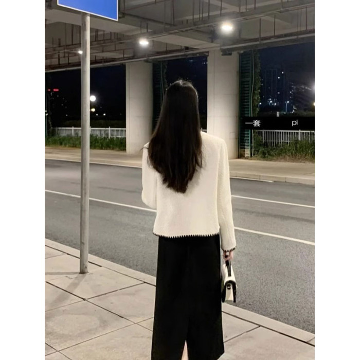 白色名媛氣質小香風外套女短款2025春新款法式小個子今年流行上衣