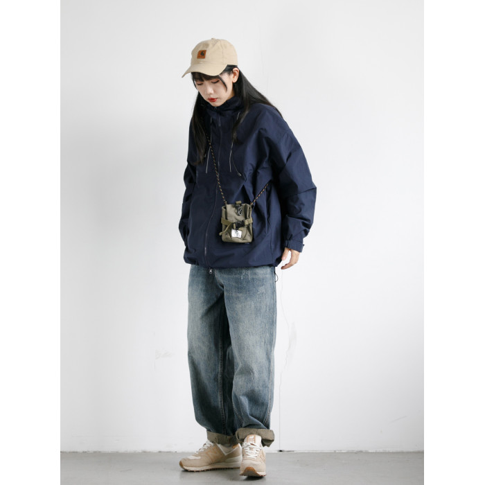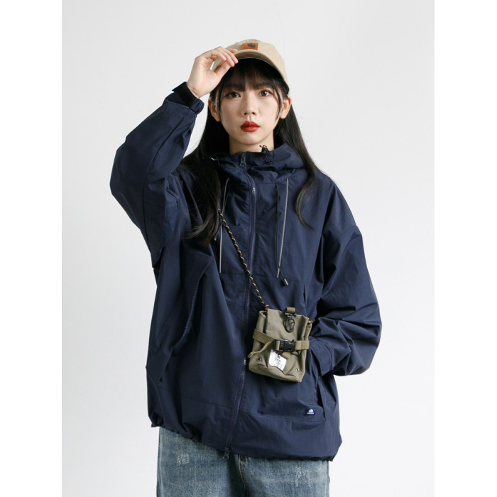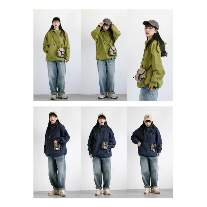 RCDB日系連帽戶外工裝拉鍊大口袋沖鋒衣夾克男女中性風寬松短外套