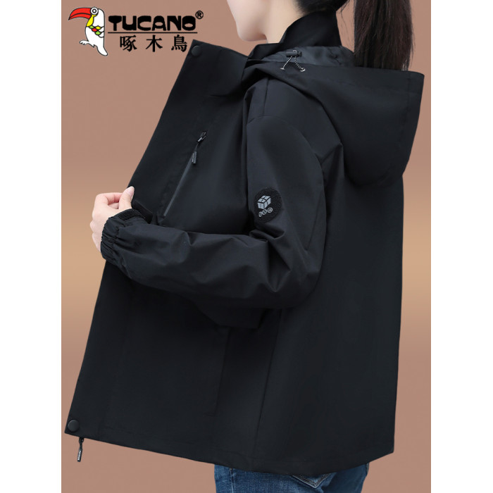 啄木鳥女士沖鋒衣外套女春秋款2025新款爆款寬松大碼防風夾克上衣