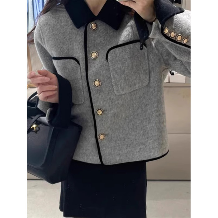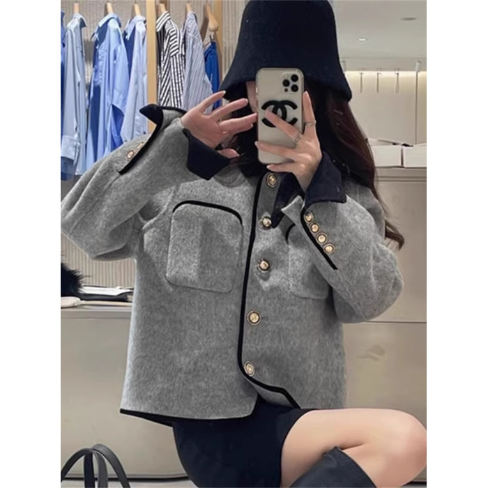 2025秋冬款小香風雙面仿羊絨大衣女短款小金釦法式小個子毛呢外套