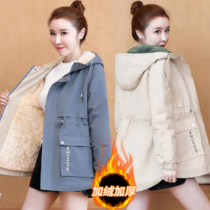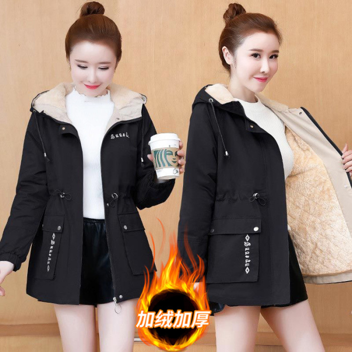 時尚加絨風衣外套女秋冬中長款2025新款韓版休閒保暖棉衣派克棉服