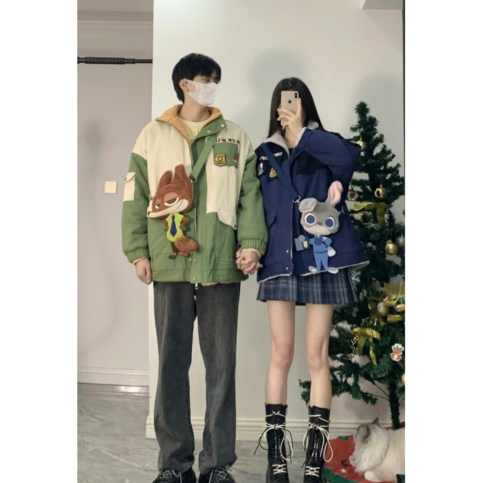 森女日系加絨加厚瘋狂動物城閨蜜裝棉服萌趣設計感外套 硃迪尼克