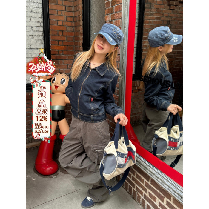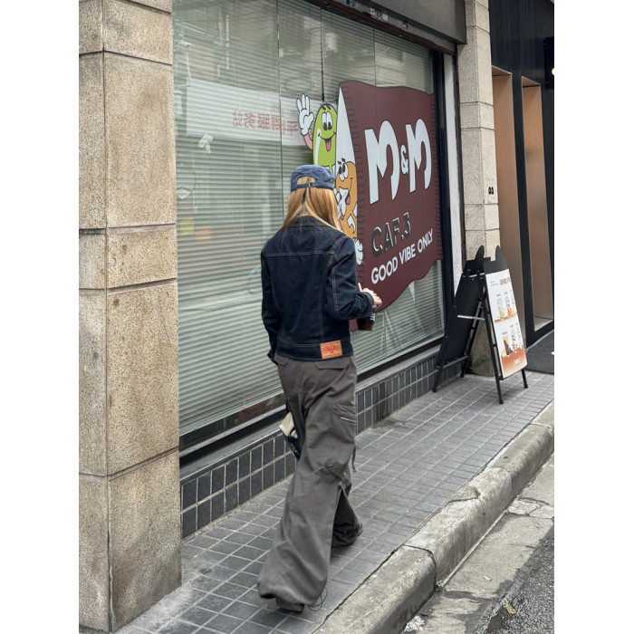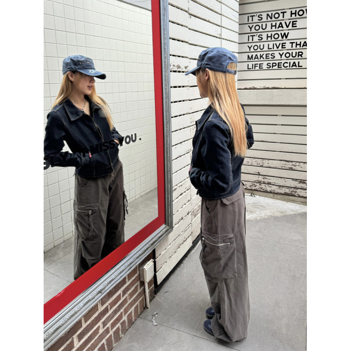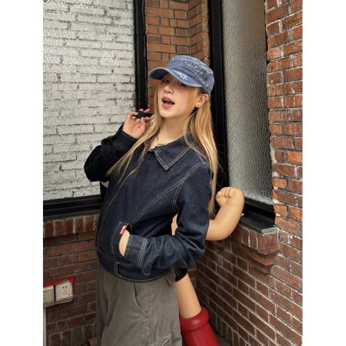 川川也美式做舊修身牛仔夾克外套女復古短款春秋新款上衣cleanfit