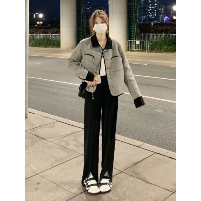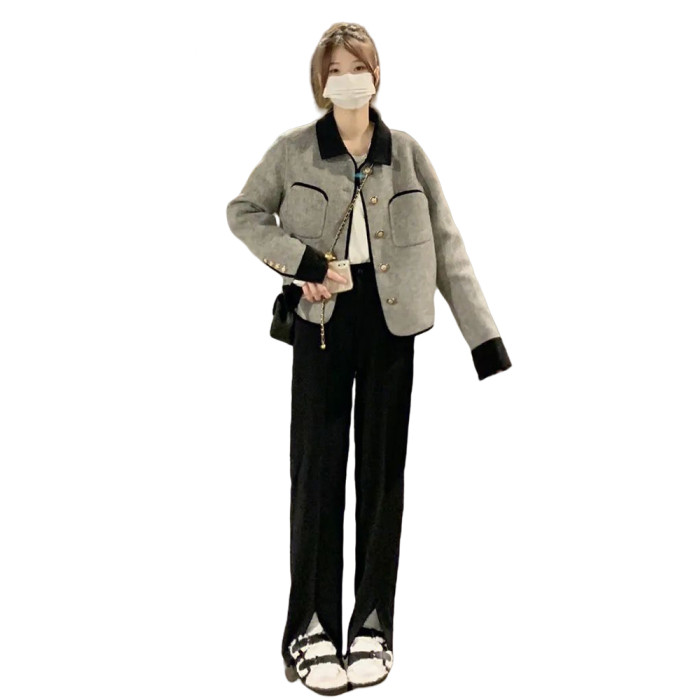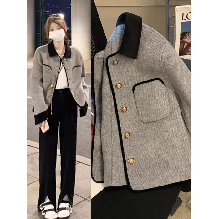 超好看小香風毛呢外套女春秋爆款大碼胖mm高級感夾棉短款呢子大衣