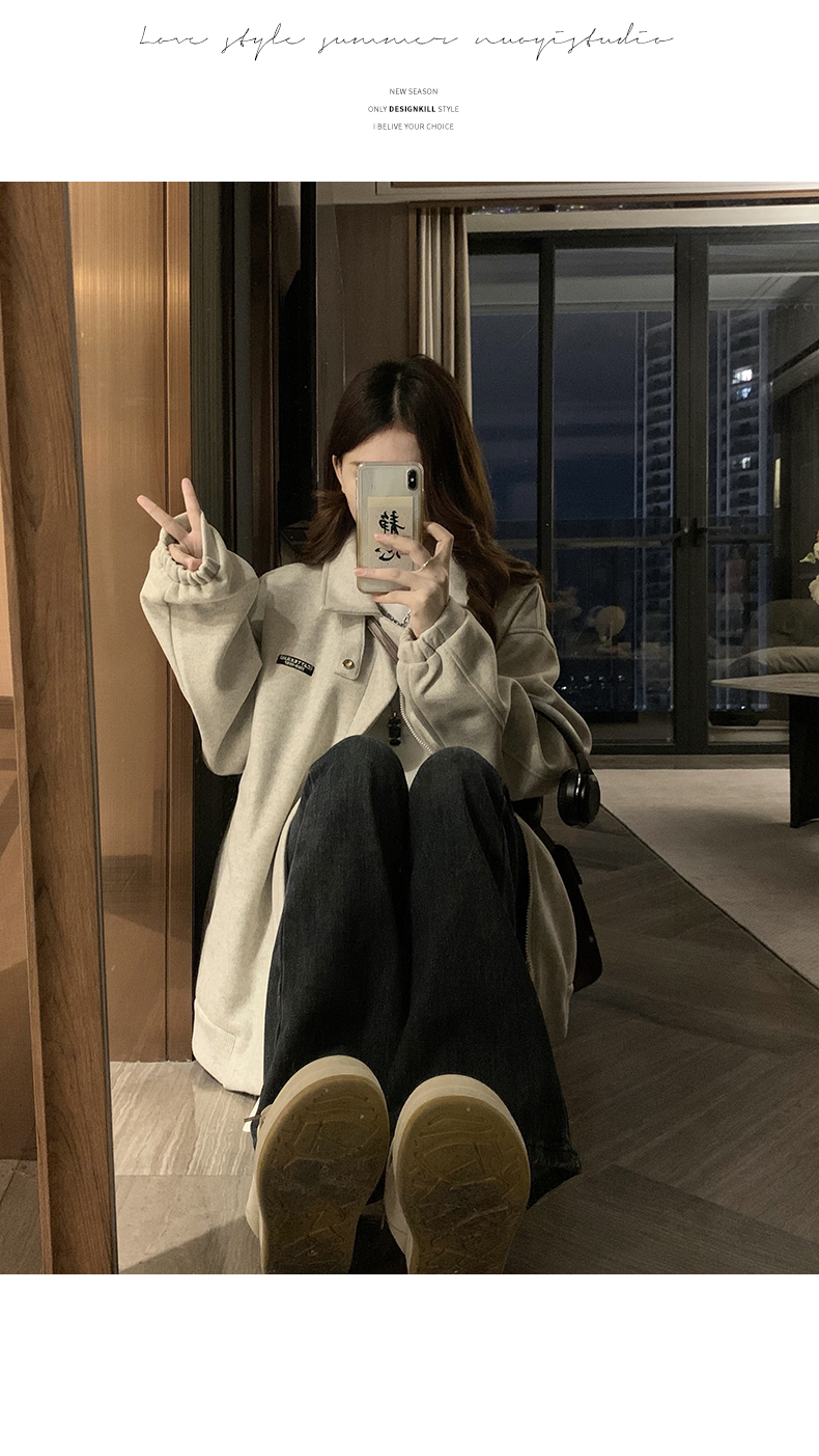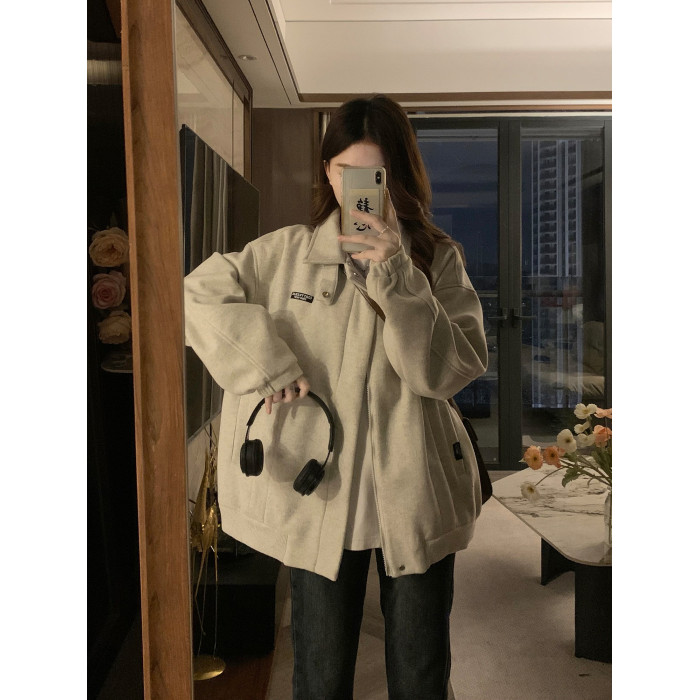 毛呢外套女2025秋冬款寬松百搭設計感小衆美式復古翻領夾克棒球服