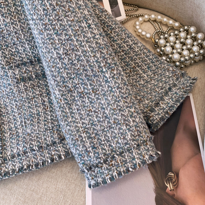 藍色小香風外套女高級感2025春秋新款今年流行名媛範小個子短外套