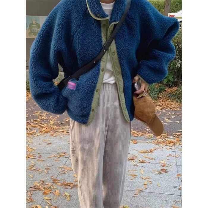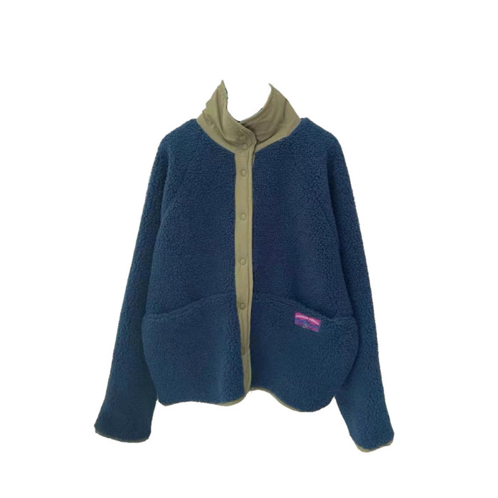加厚羊羔毛外套女冬季新款韓版寬松撞色正反兩面穿搖粒絨立領上衣