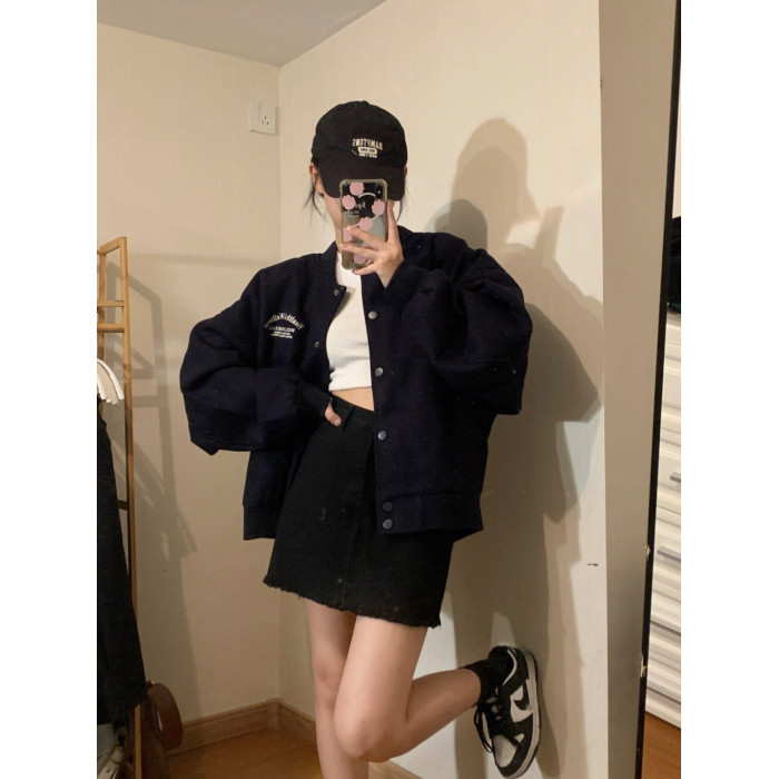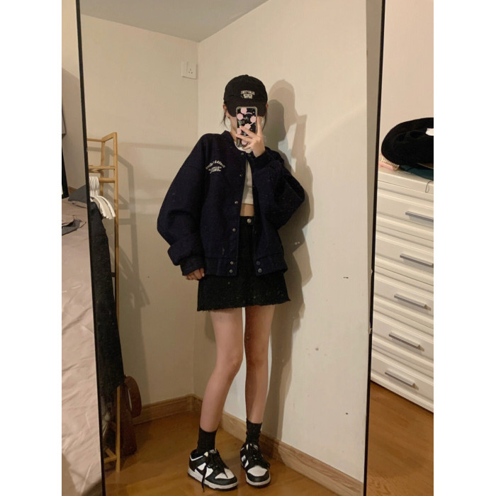 美式復古棒球服外套女2024年春秋新款oversize寬松小香風夾克上衣