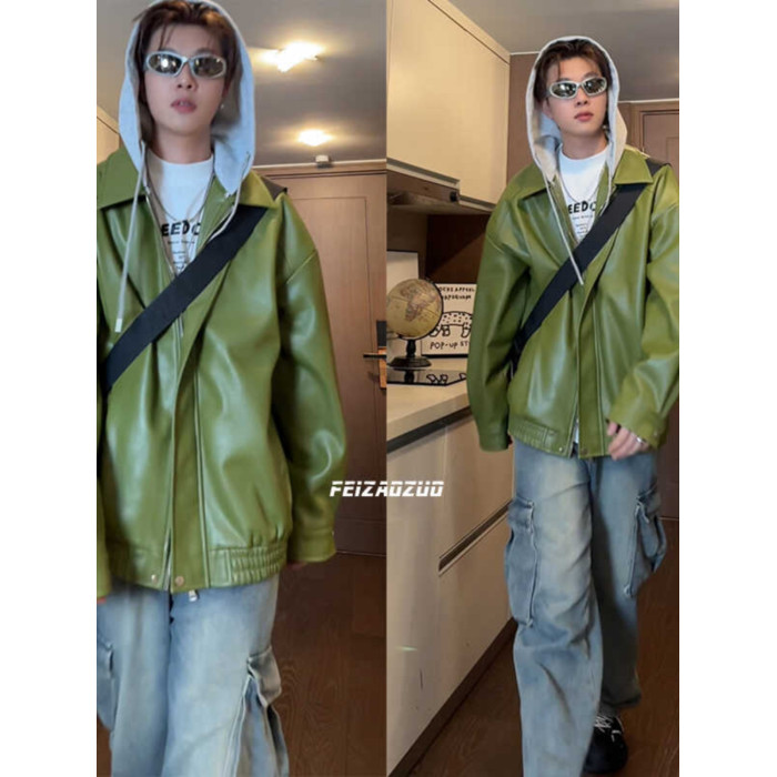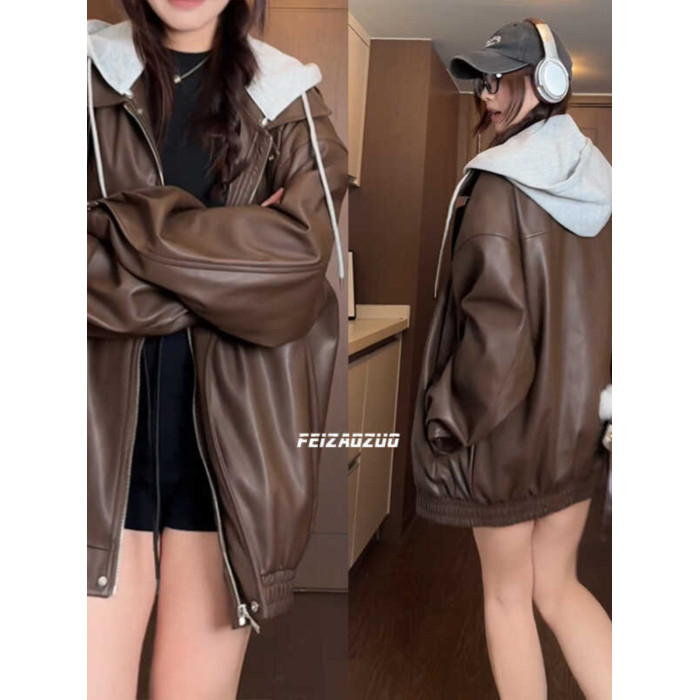 胖mm皮衣外套女春秋季美式高街學生寬松大碼高級感機車夾克棒球服