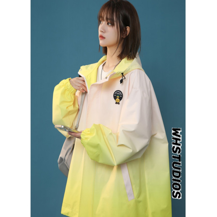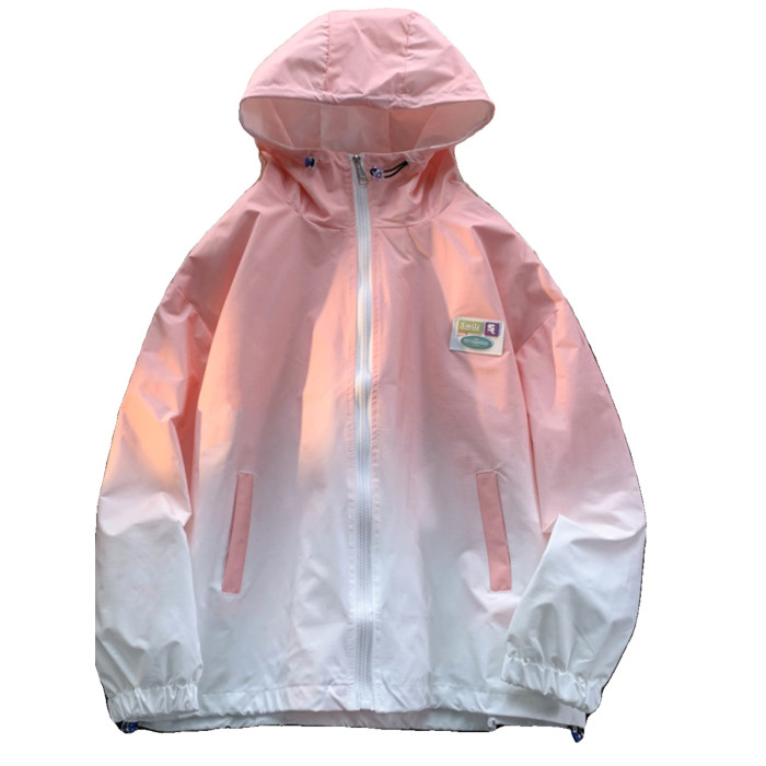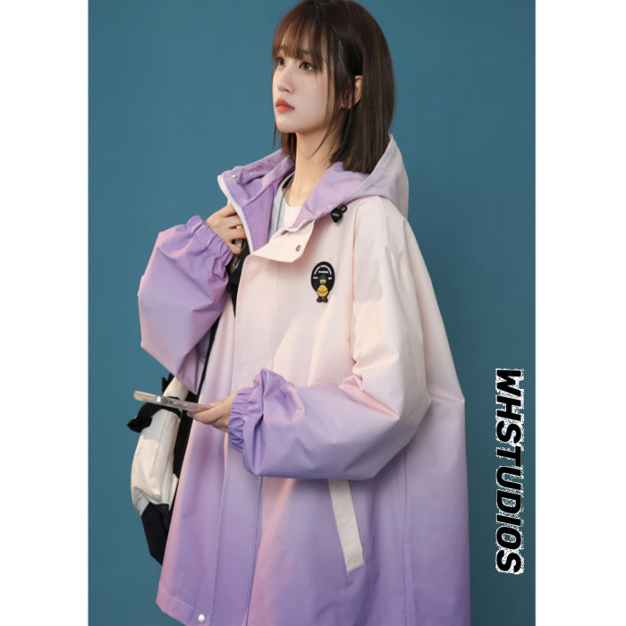 紥染漸變色沖鋒衣外套女春季胖mm學生大碼寬松拼色連帽棒球服夾克