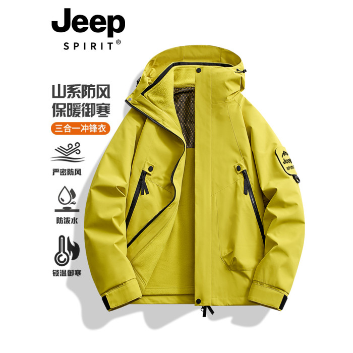 JEEP SPIRIT綠色沖鋒衣女2025新款戶外三合一小個子春秋防風外套