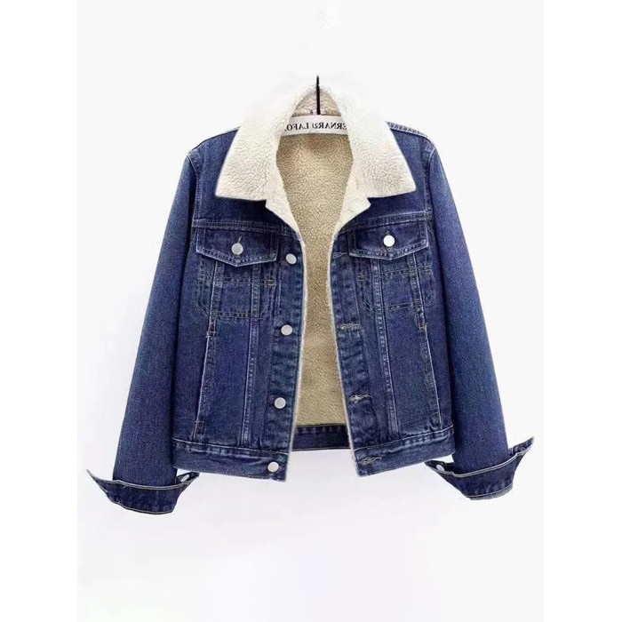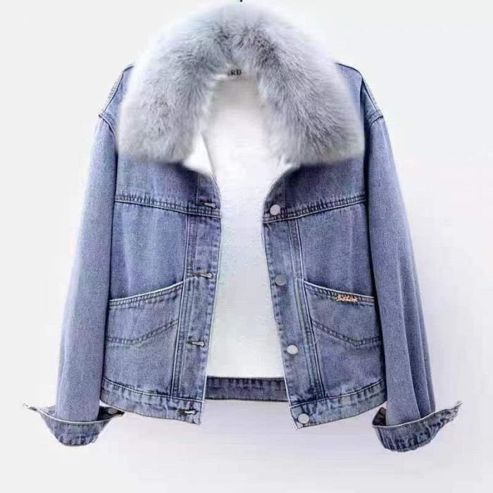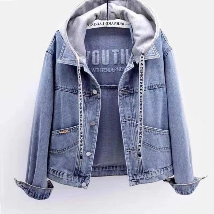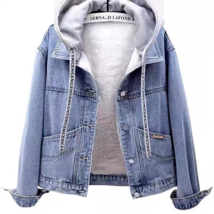 連帽牛仔外套女寬松2025秋冬季新款韓版加絨加厚上衣棉服短款字母