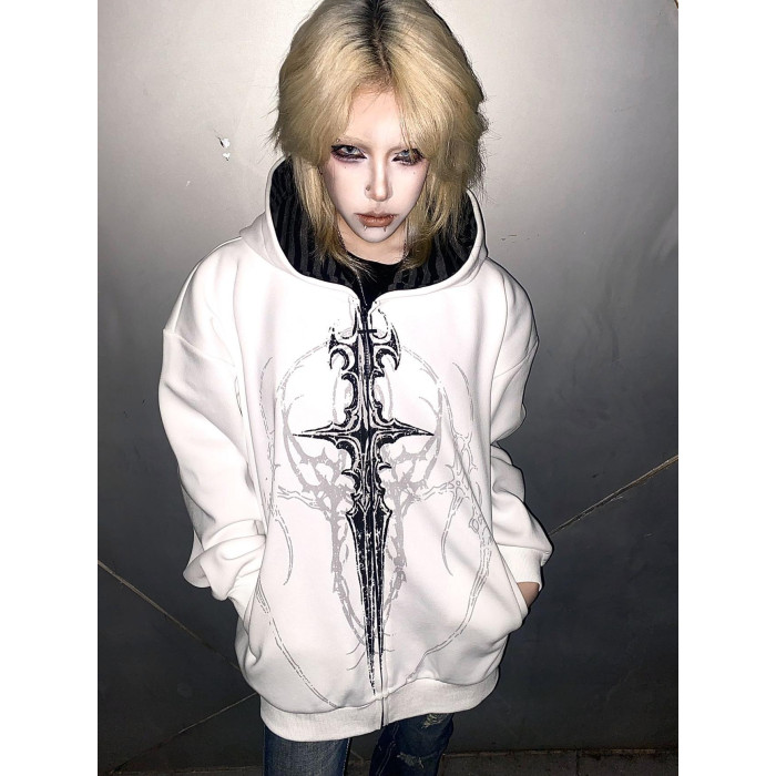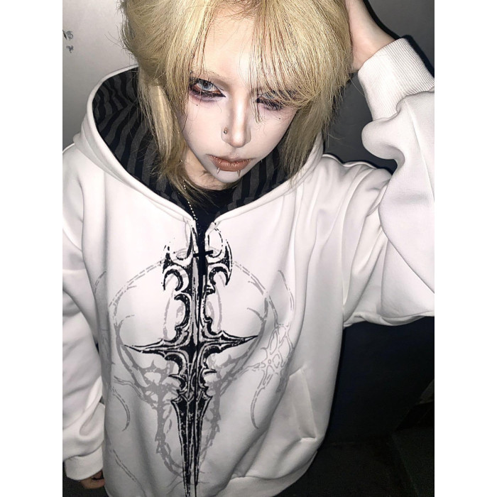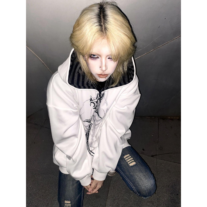 溼體原創 亞文化暗黑系薄款連帽搖滾龐克寬松外套刺青印花上衣女