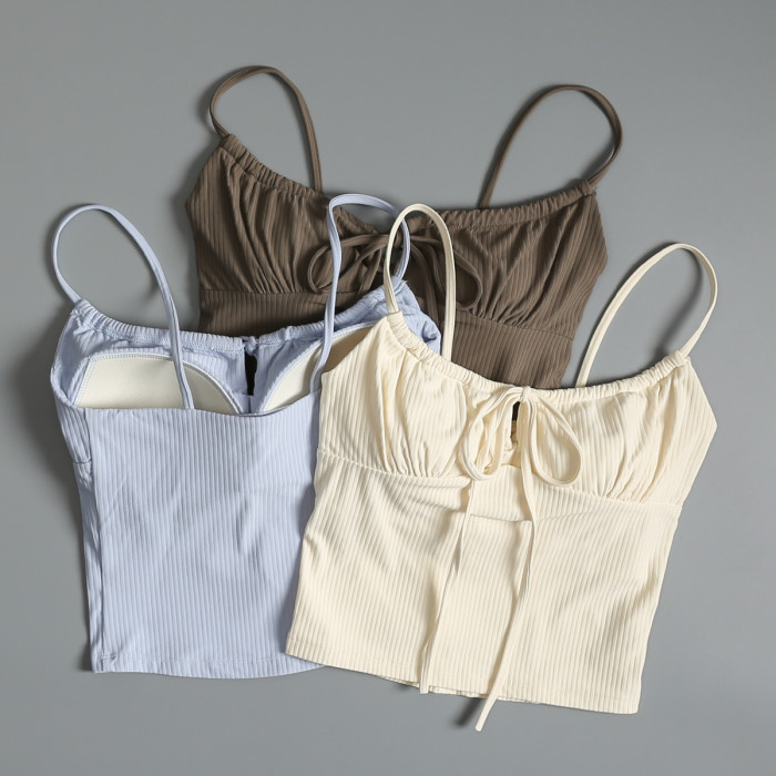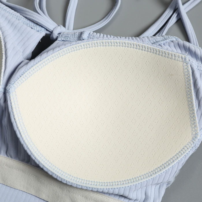 運動背心女夏季美背一體式吊帶抽繩褶皺瑜珈文胸跑步健身bra外穿