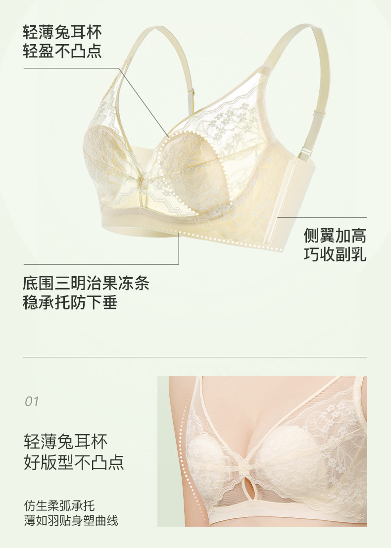 都市麗人兔耳杯內衣女夏薄法式蕾絲透氣大胸顯小聚攏性感純欲文胸