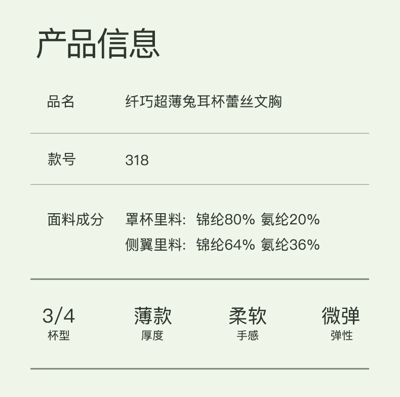 | 罩杯款式 | 3/4罩杯 |