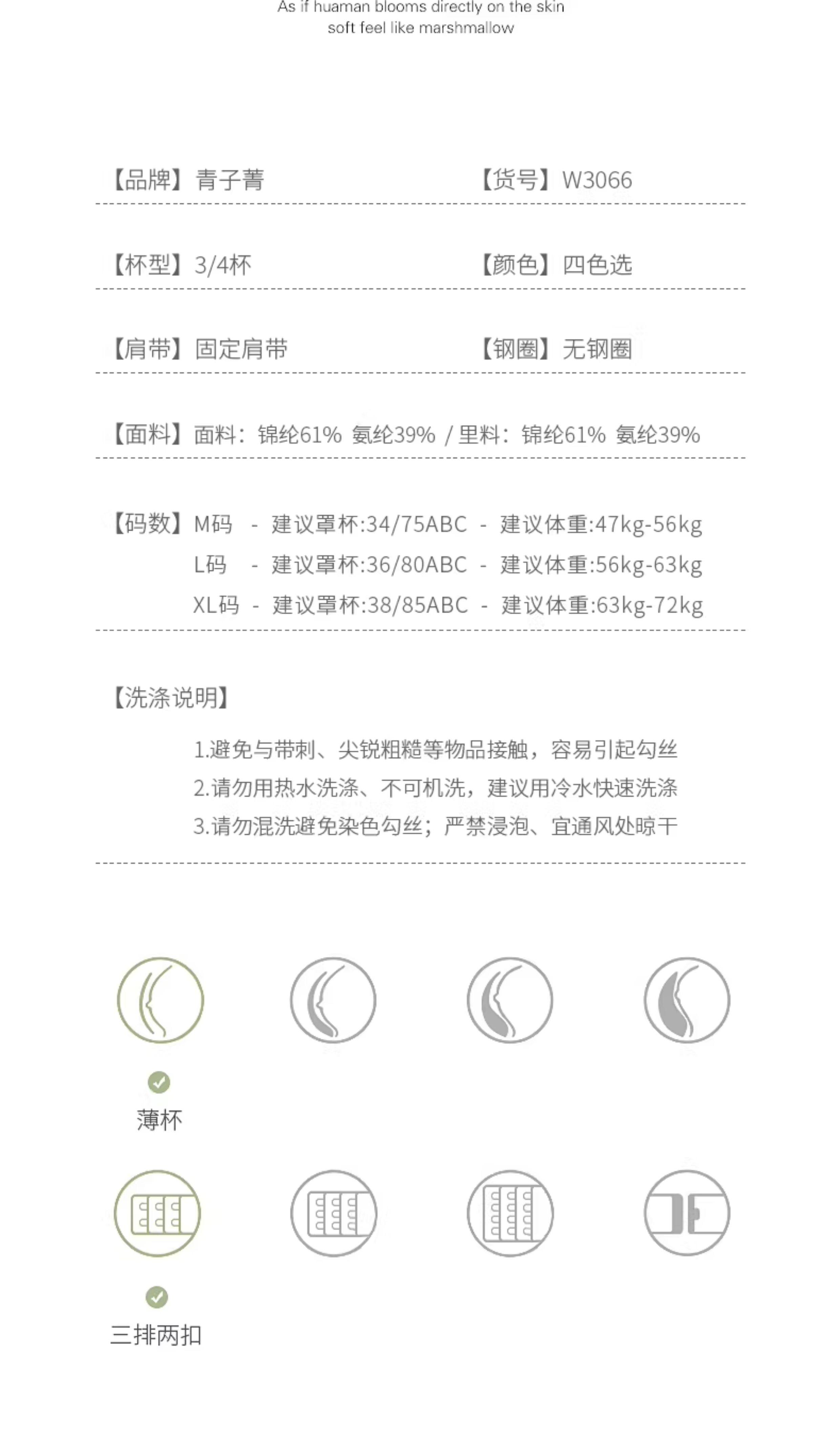 | 罩杯款式 | 3/4罩杯 |
