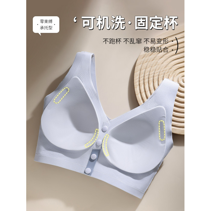 大碼前釦無痕內衣女胖mm大胸顯小聚攏收副乳防下垂薄款背心式文胸