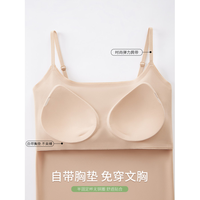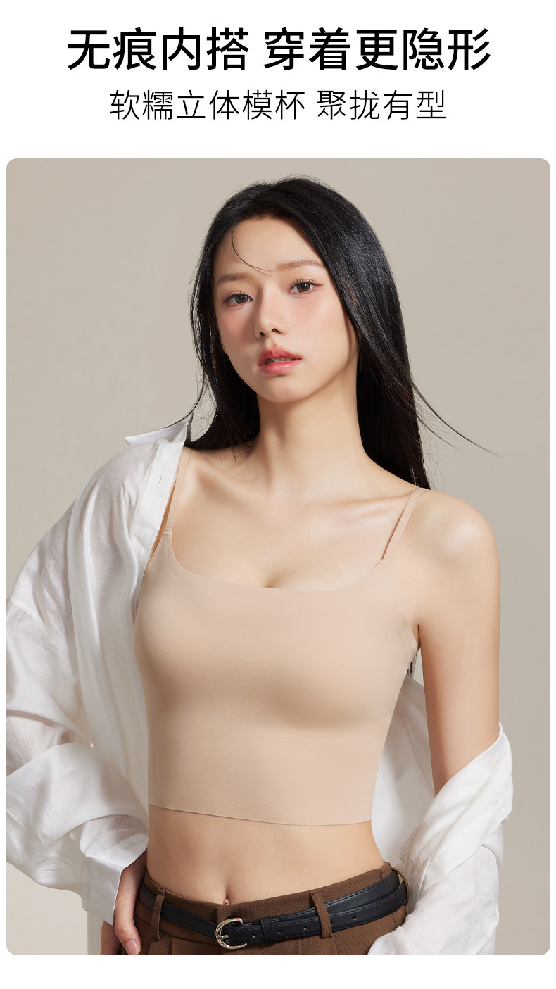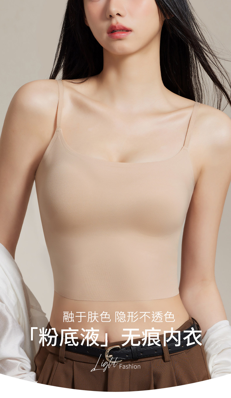 粉底液內衣美背女隱形無痕2025夏季冰絲聚攏膚色吊帶文胸一體背心