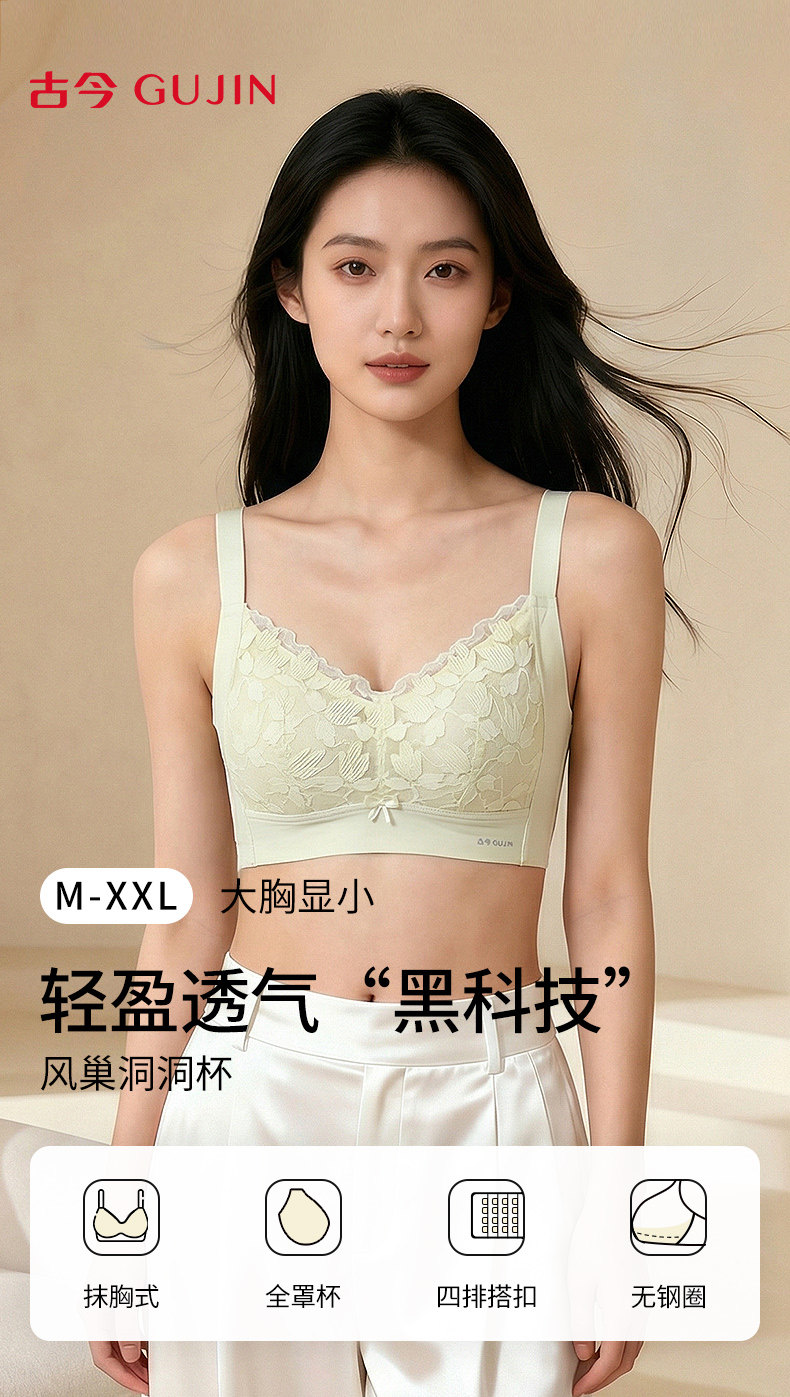 古今內衣女洞洞杯透氣無鋼圈防下垂文胸大胸顯小文胸