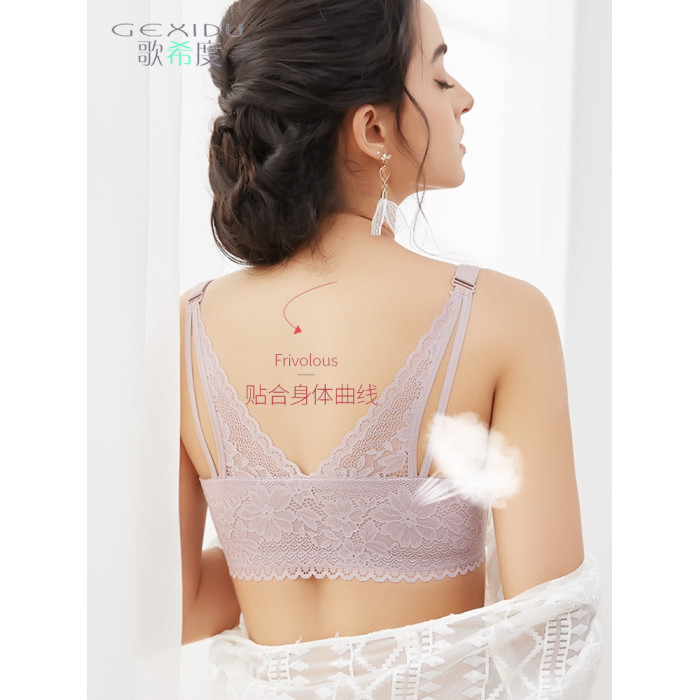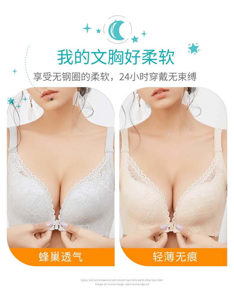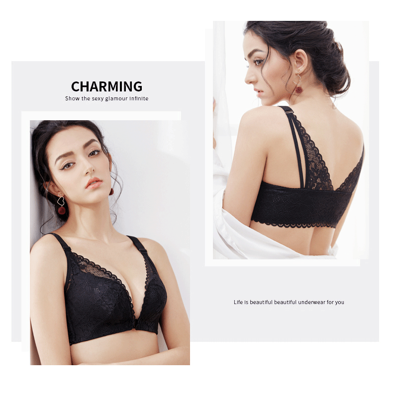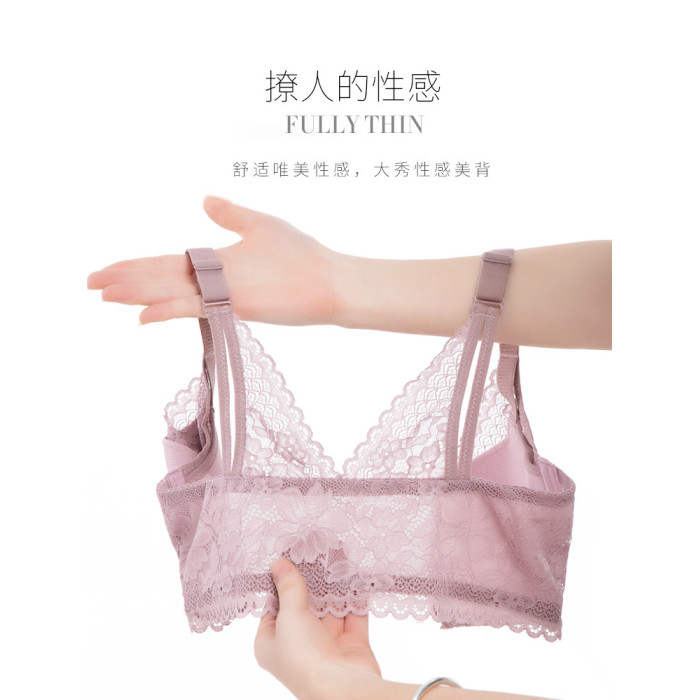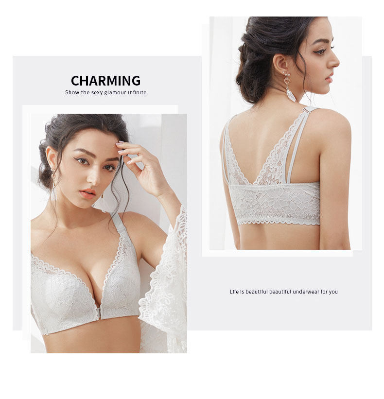 前釦蕾絲大碼防下垂內衣女士胸罩蕾絲大胸顯小聚攏收副乳文胸性感