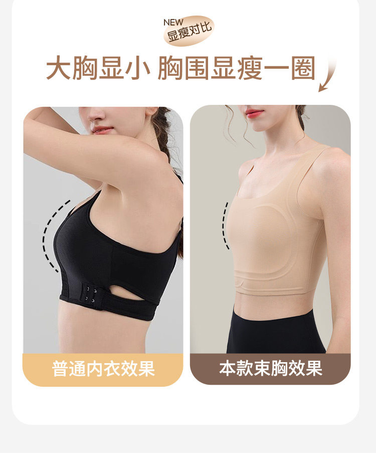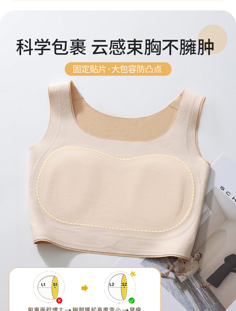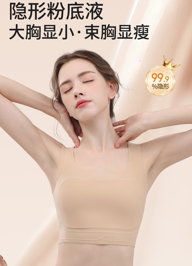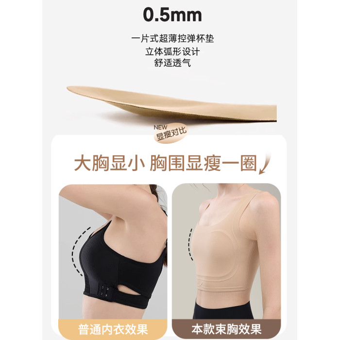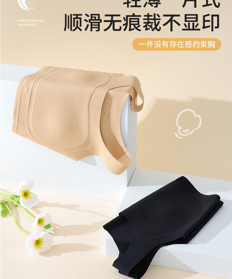 紙片人束胸內衣女大胸顯小胸夏季薄款粉底液隱形無痕背心式文胸罩