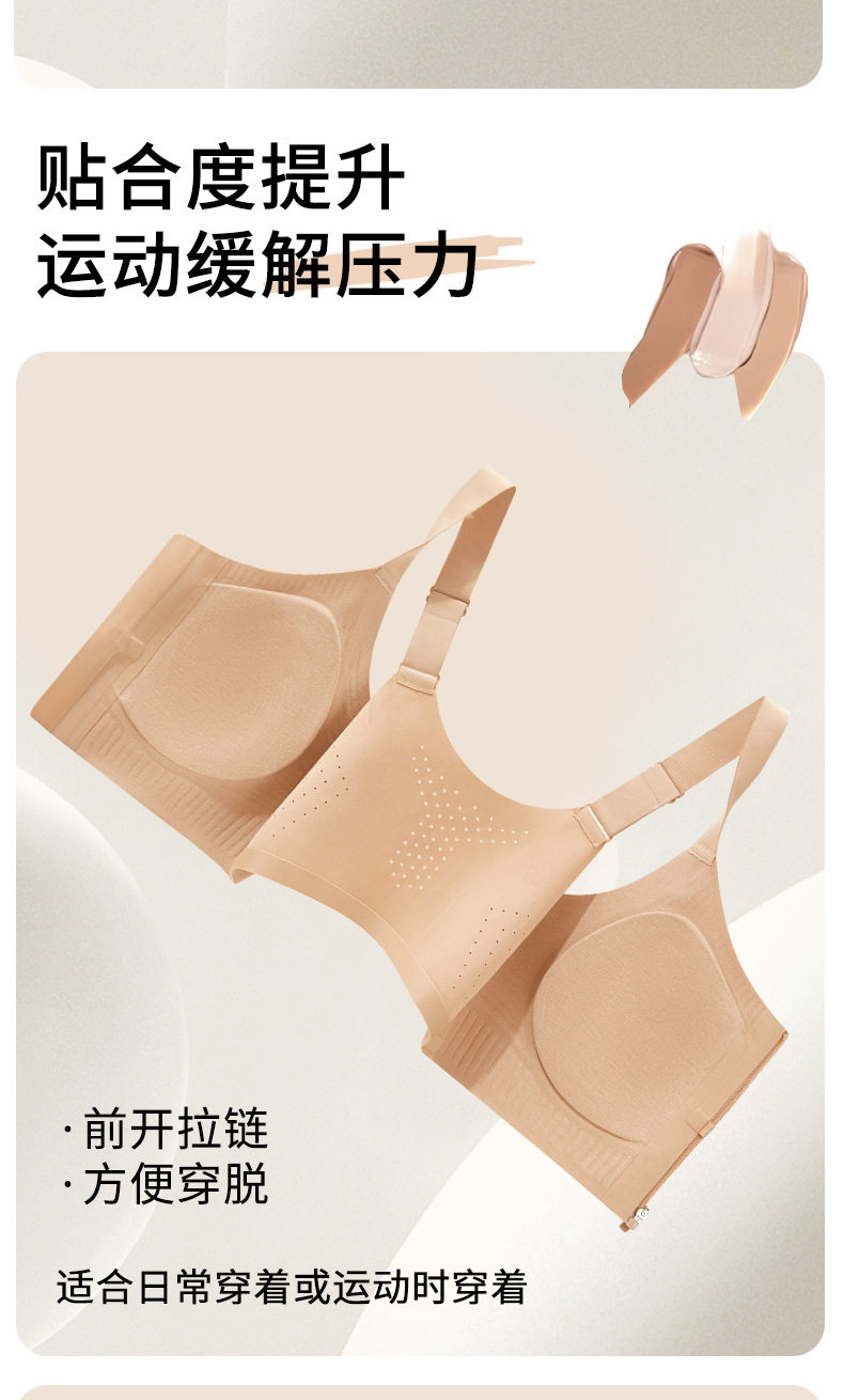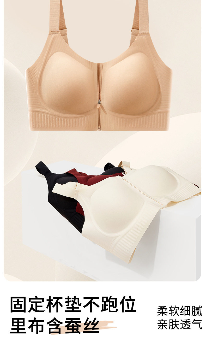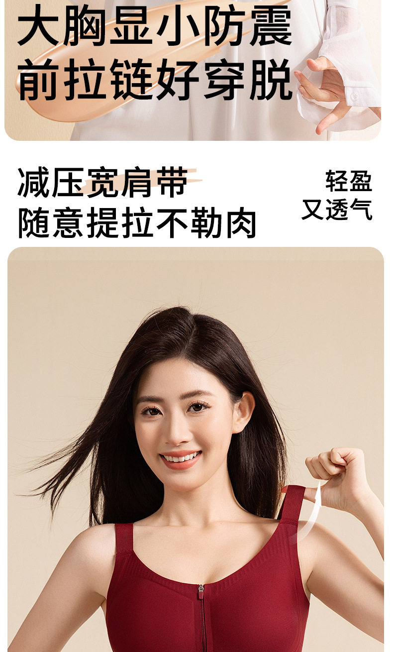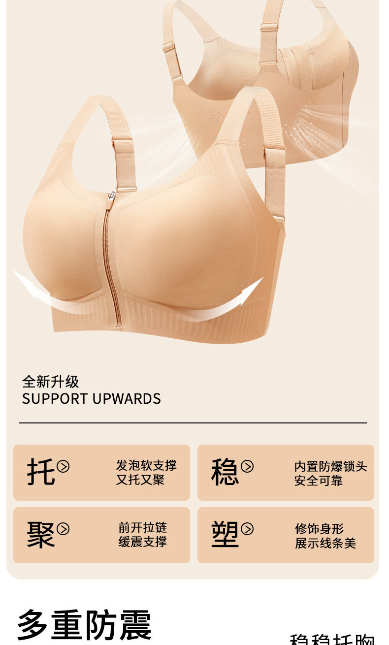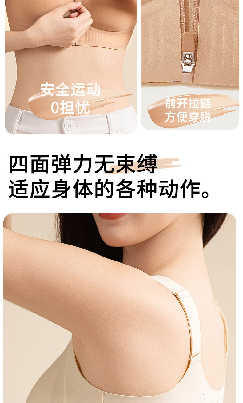前置拉鍊粉底液運動文胸桑蠶絲養膚大胸顯小無鋼圈瑜珈運動內衣女